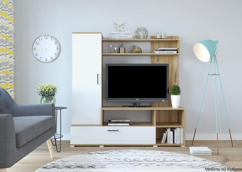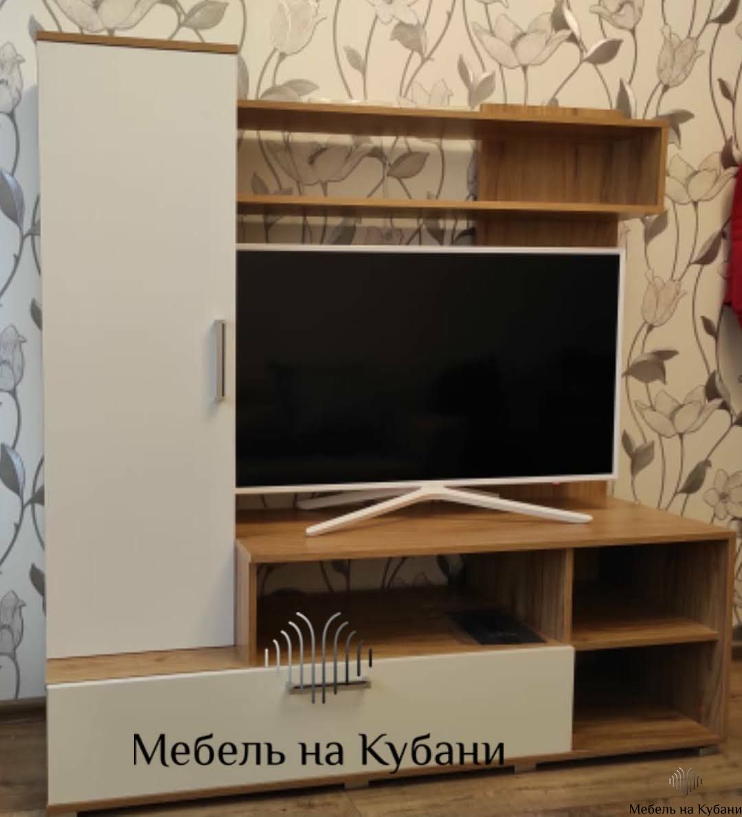 Стенка оснащена: Пеналом с полками, полками для книг, нишами для аппаратуры и закрывающимся отделом внизу стенки.
