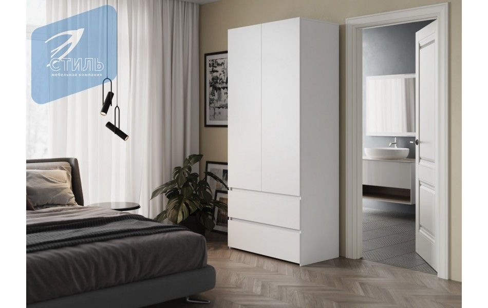 Милано 4 шкаф 2 ств Белый гладкий