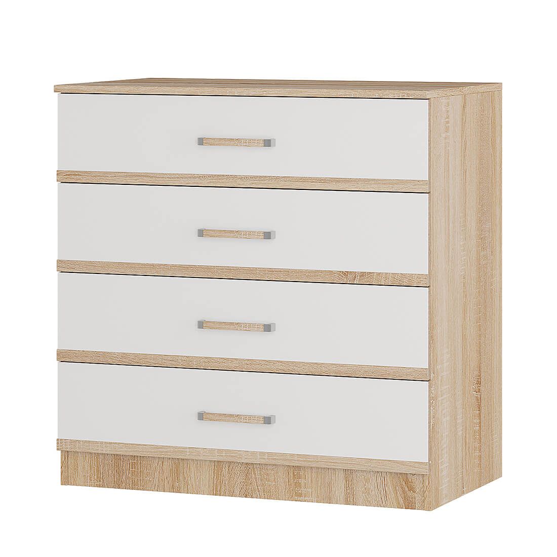 Комод является частью модульной коллекции Сакура. Его можно поставить как в прихожую, так и в спальню, детскую или гостиную. Классический комод Сакура состоит из четырех выдвижных ящиков, каждый из которых имеет светлый фасад и эргономичную ручку с хромированной отделкой. Корпус модели сделан из ЛДСП в цвете сонома. Красивое и практичное решение по лучшей цене — это комод Сакура в компании «Семья Мебелони».