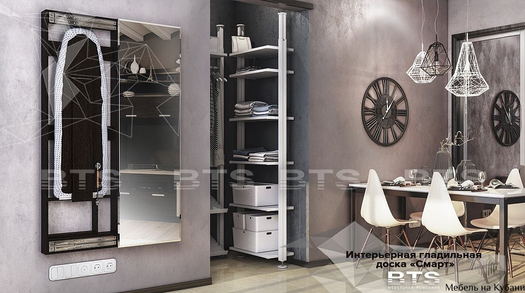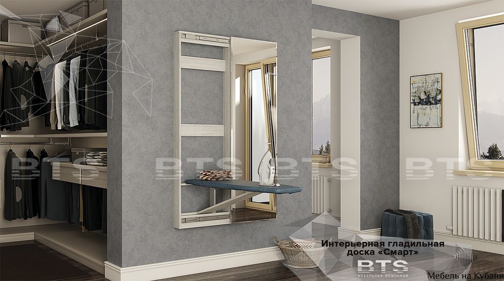 Гладильная доска-купе "Смарт" — бесценная находка для тех, кто стремится максимально рационализировать пространство. Она крепится к стене, что делает эксплуатацию особенно удобной. После глажки вы легко скроете доску за дверцей, превратив всю конструкцию в декоративный элемент интерьера.