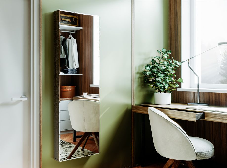 - универсальная конструкция — зеркальную створку можно расположить как слева, так и справа;