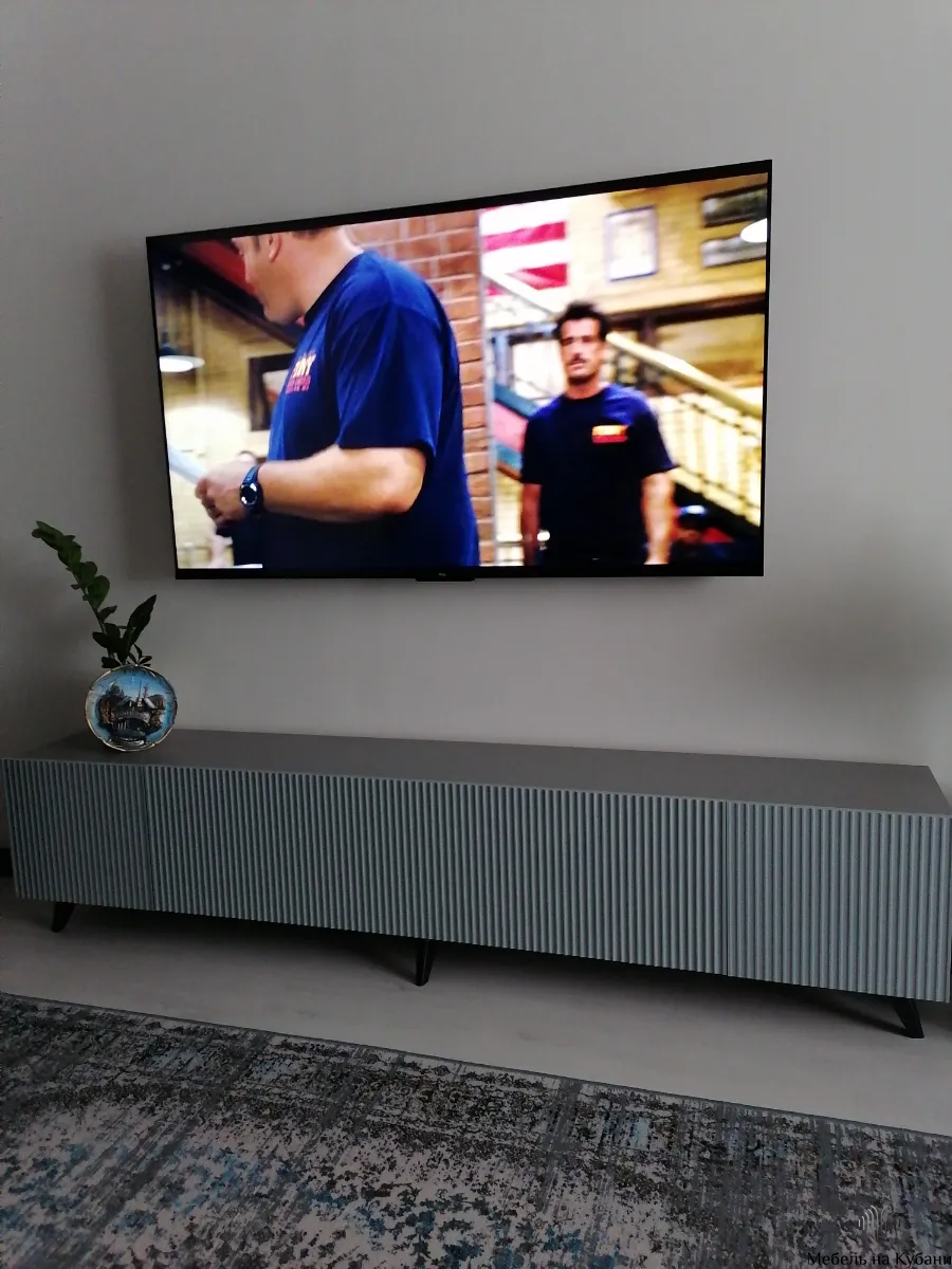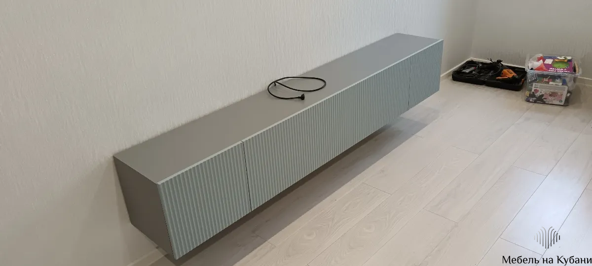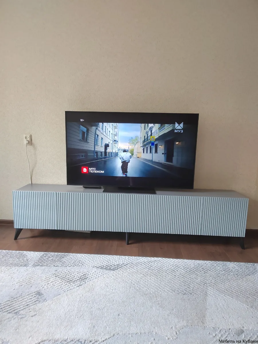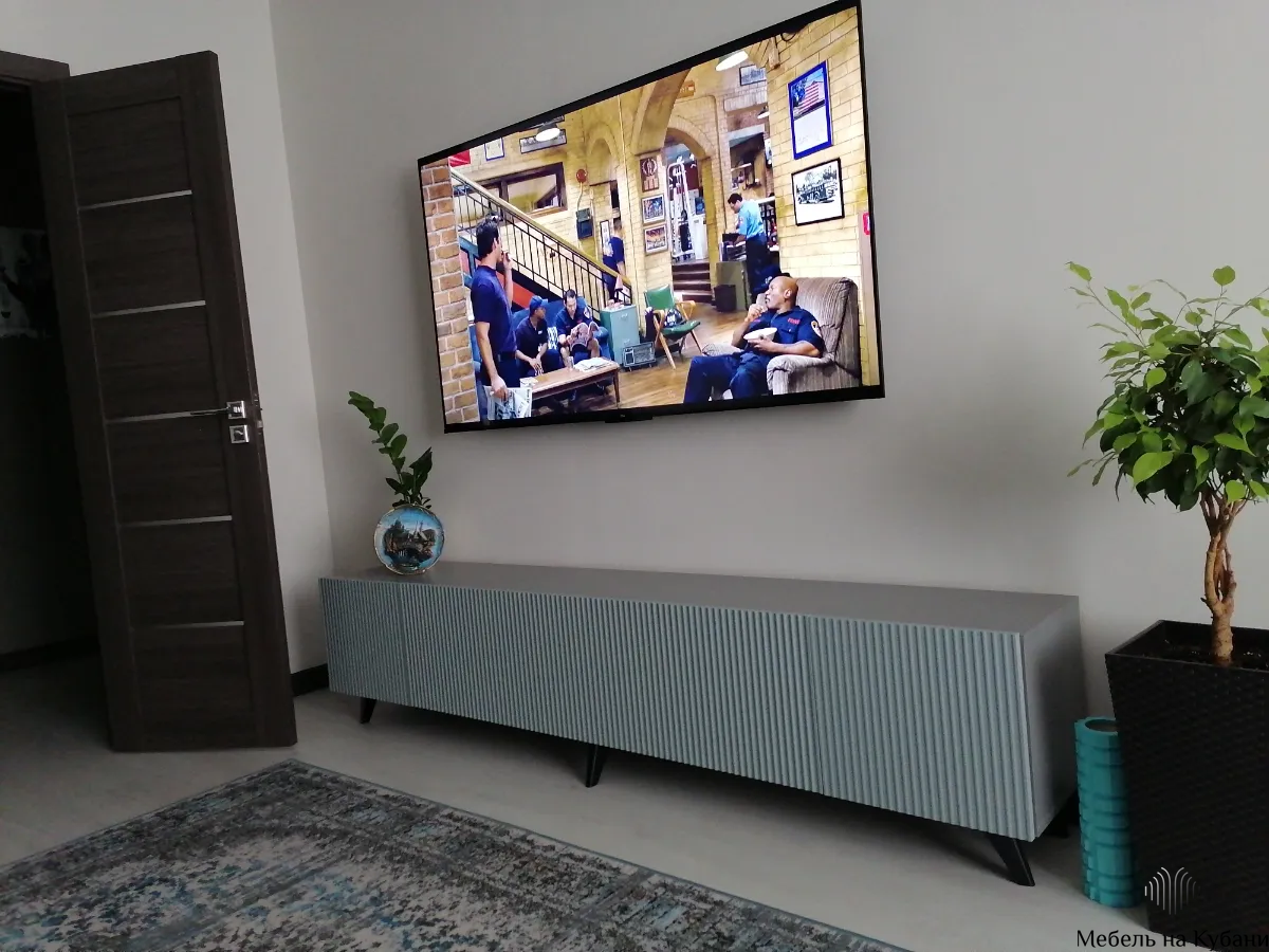 Добавьте стиль и функциональность в свой интерьер с нашей тумбой под ТВ в скандинавском стиле в цвете Серый Шифер/Грин Грей Софт.