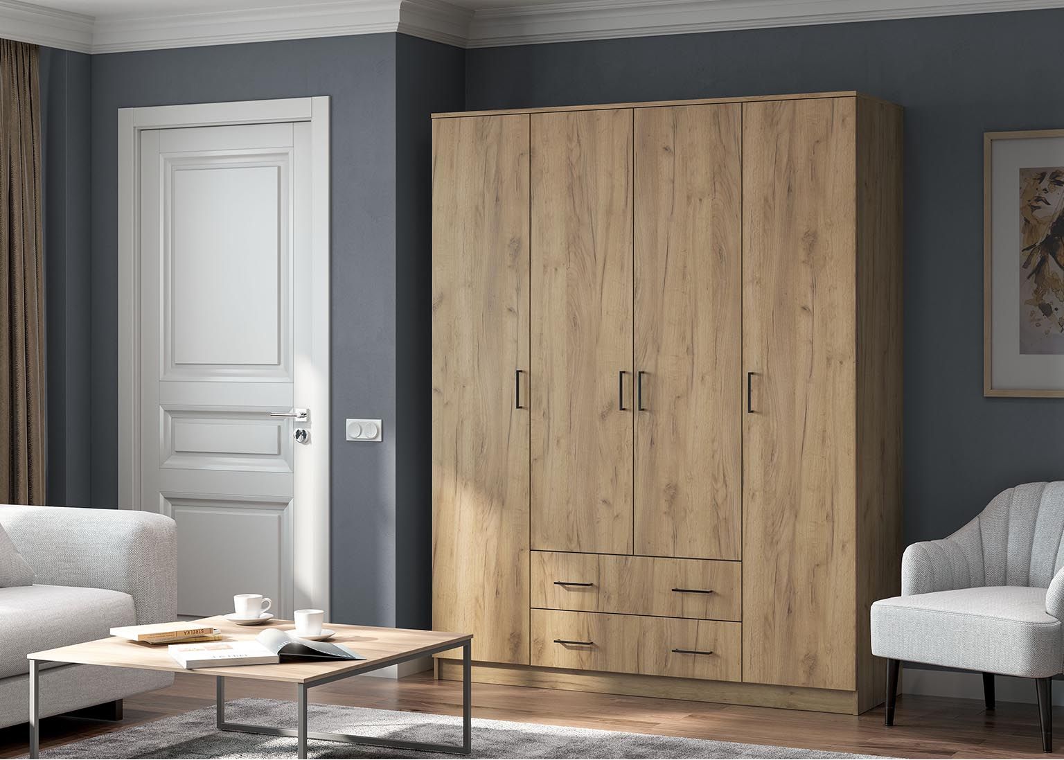 ПроизводительNNМатериал корпусаЛДСПМатериал фасадаЛДСПЧисло дверей4ДверцыраспашныеШтанга для вешалокестьШирина1601 ммВысота2050 ммГлубина520 ммЦветДуб золотой