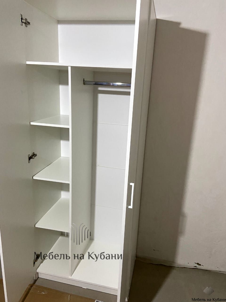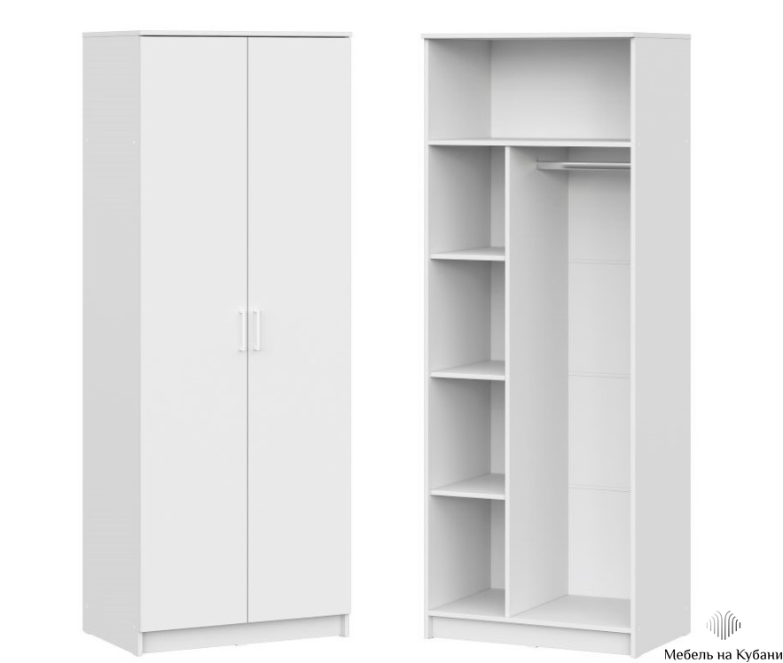 Шкаф ШК 2 - функциональный шкаф с распашными фасадами и двумя отделениями внутри. Шкаф оснащен полками для белья и штангой для хранения одежды на плечиках. Ручки пластик.