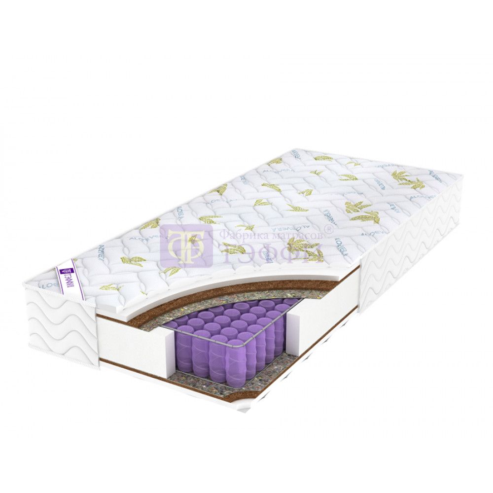 Матрас Умеренной Жёсткости. Создан на основе независимого пружинного блока TFK (256 шт. на м2), обладающего ортопедическими свойствами. В качестве изолирующего и защитного слоя в матрасе используется Термоскрепленный войлок. Жёсткость матрасу придаёт Кокосовое термоскрепленное полотно, которая способна выдерживать большие нагрузки и равномерно ее распределять по поверхности матраса. Для смягчения кокосового слоя верхним слоем служит Пенополиуретан. Матрас оснащен системой усиления периметра пружинного блока рамкой и коробом из пенополиуретана по периметру матраса. В качестве дополнительного мягкого слоя используется трикотаж или хлопковый жаккард, стёганная на синтепоне с объёмной стёжкой.