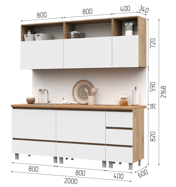 Габаритные размеры верхних модулей ШхВхГ мм: 2000х720х340 мм.