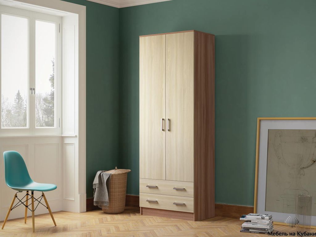 Распашной шкаф 2-ух дверный Дуэт Эра — практичный предмет мебели для оформления зоны хранения в вашей спальне или другом помещении дома. Лаконичный дизайн модели позволит разместить изделие в любом пространстве.Для изготовления шкафа используется прочный и качественный материал — ЛДСП.