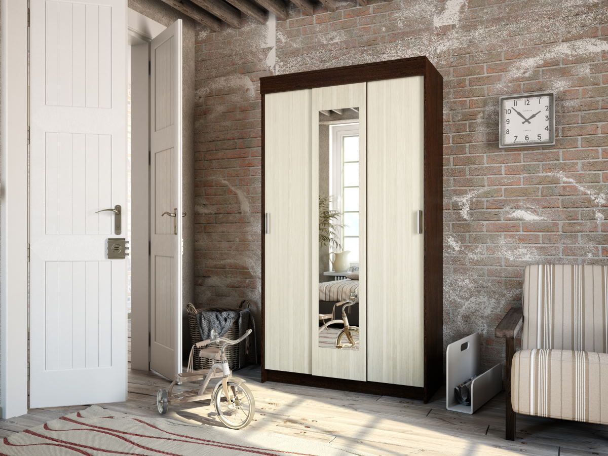 Шкаф-купе Эко отличное решение которое сочетает в себе все самое необходимое для хранения вещей. Оригинальное зеркало на фасаде модели позволит оценить внешний вид во весь рост и визуально расширит пространство.