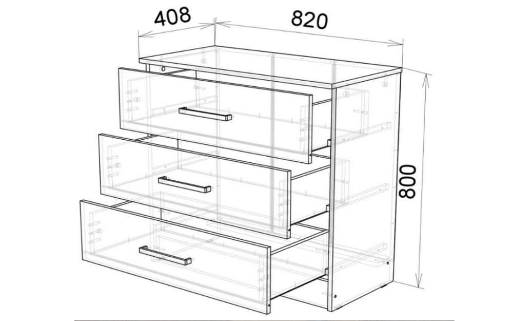 Небольшой комод Адель — универсальное решение для меблировки спальни или прихожей. Три вместительных выдвижных ящика помогут организовать хранение белья, одежды, документов и других необходимых вещей.
