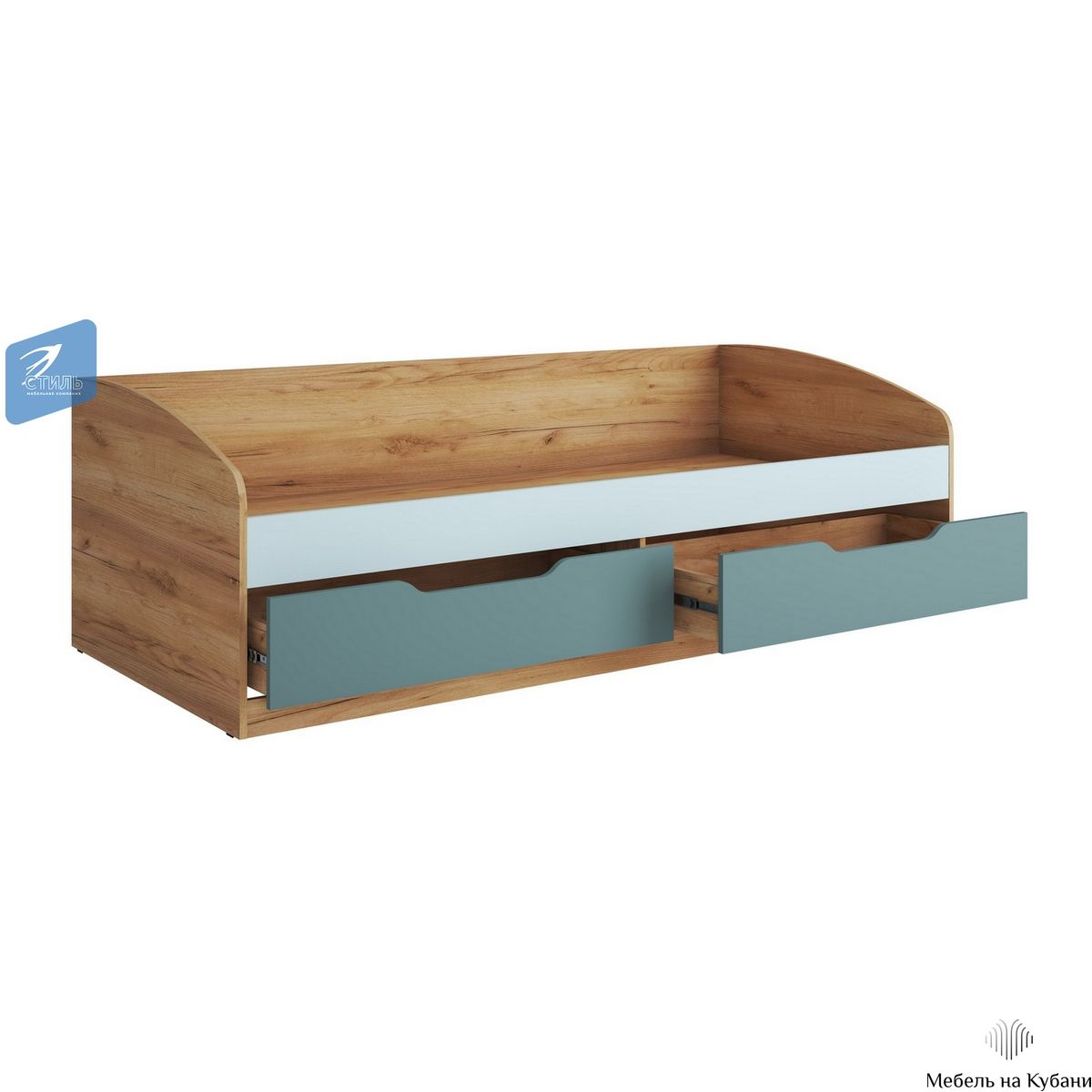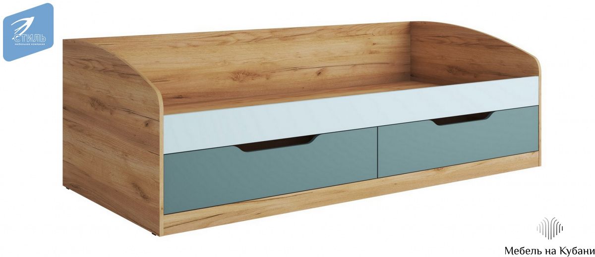 ПроизводительСтильЯщик под кроватьюестьШирина940 ммВысота650 ммДлина2032 ммДлина спального места2 мЦветДуб Крафт золотой - Мята/Сумеречный голубой