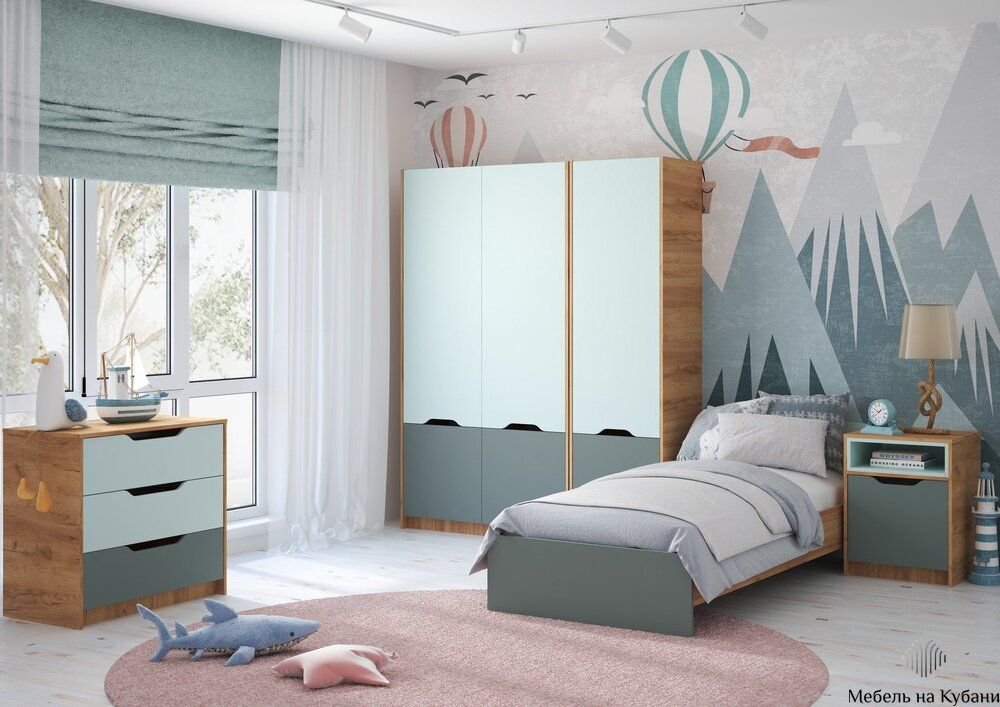 Rich комлект мебели для детской комнаты Дуб Крафт золотой - Мята/Сумеречный голубой