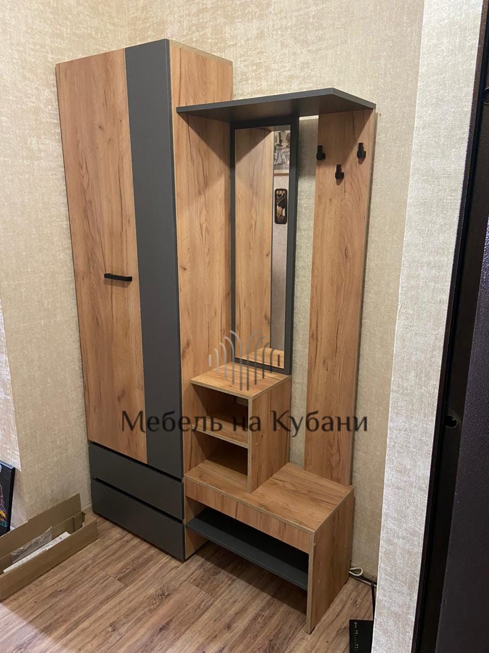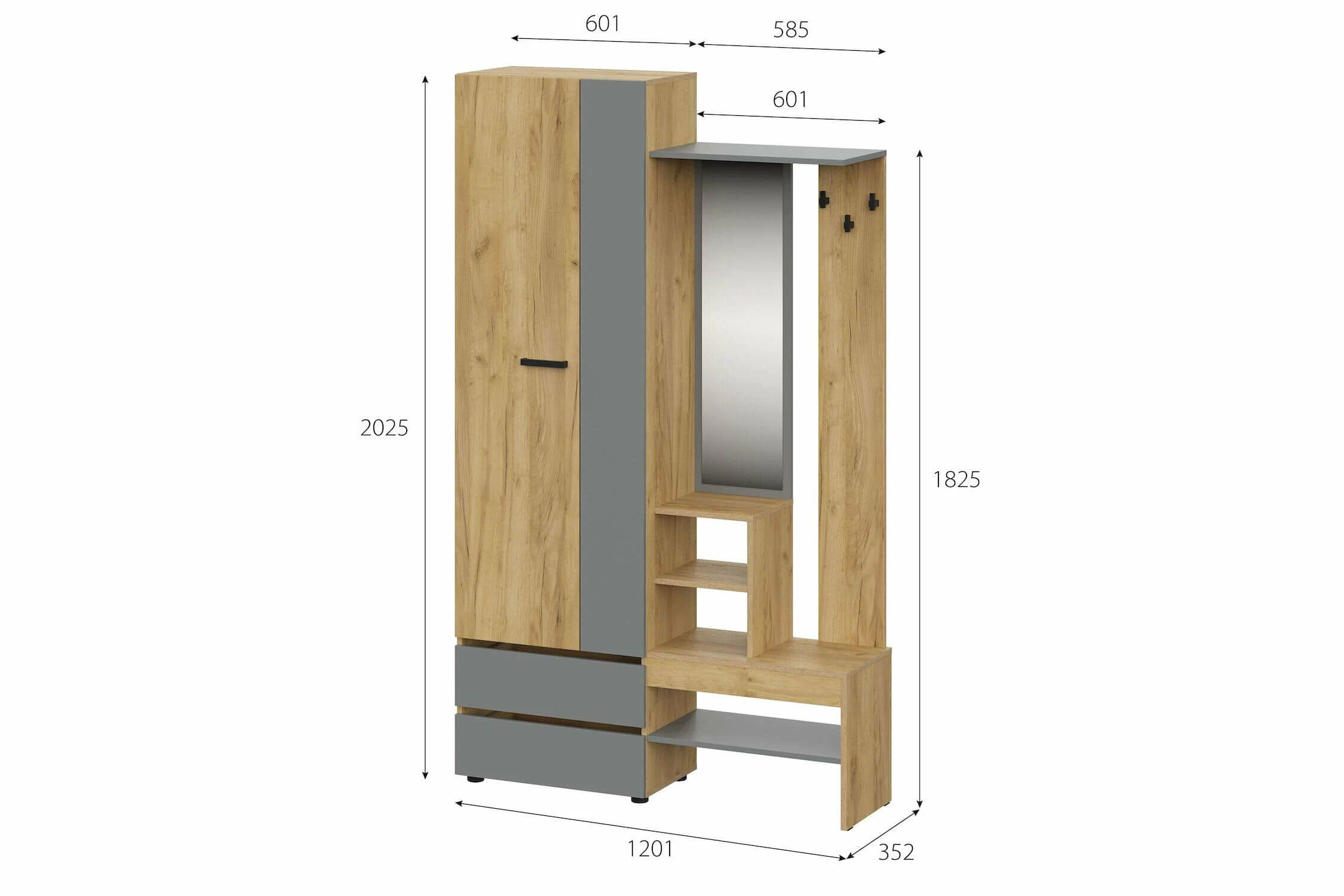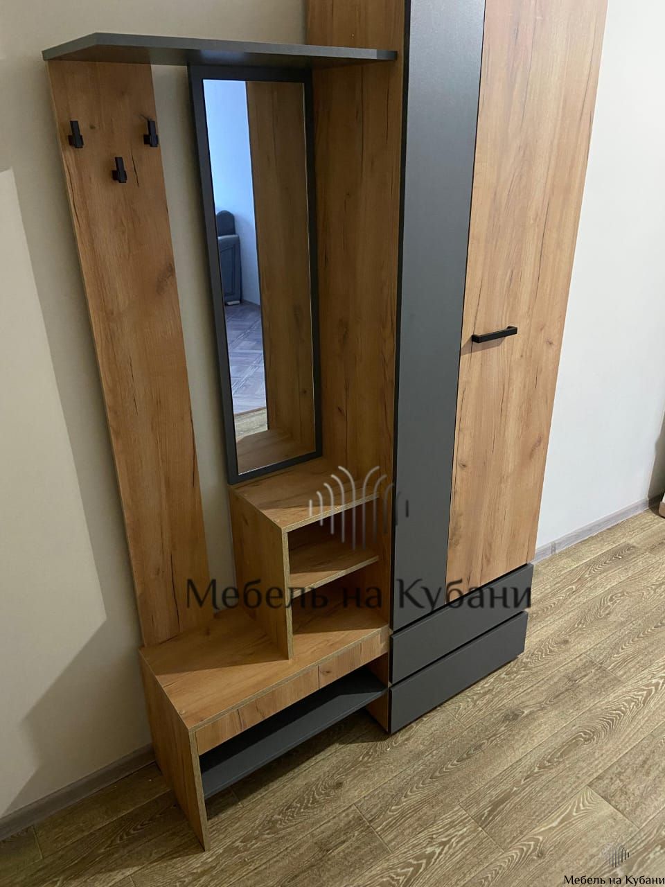 Абрау вешалка с зеркалом прихожая Дуб золотой/Графит