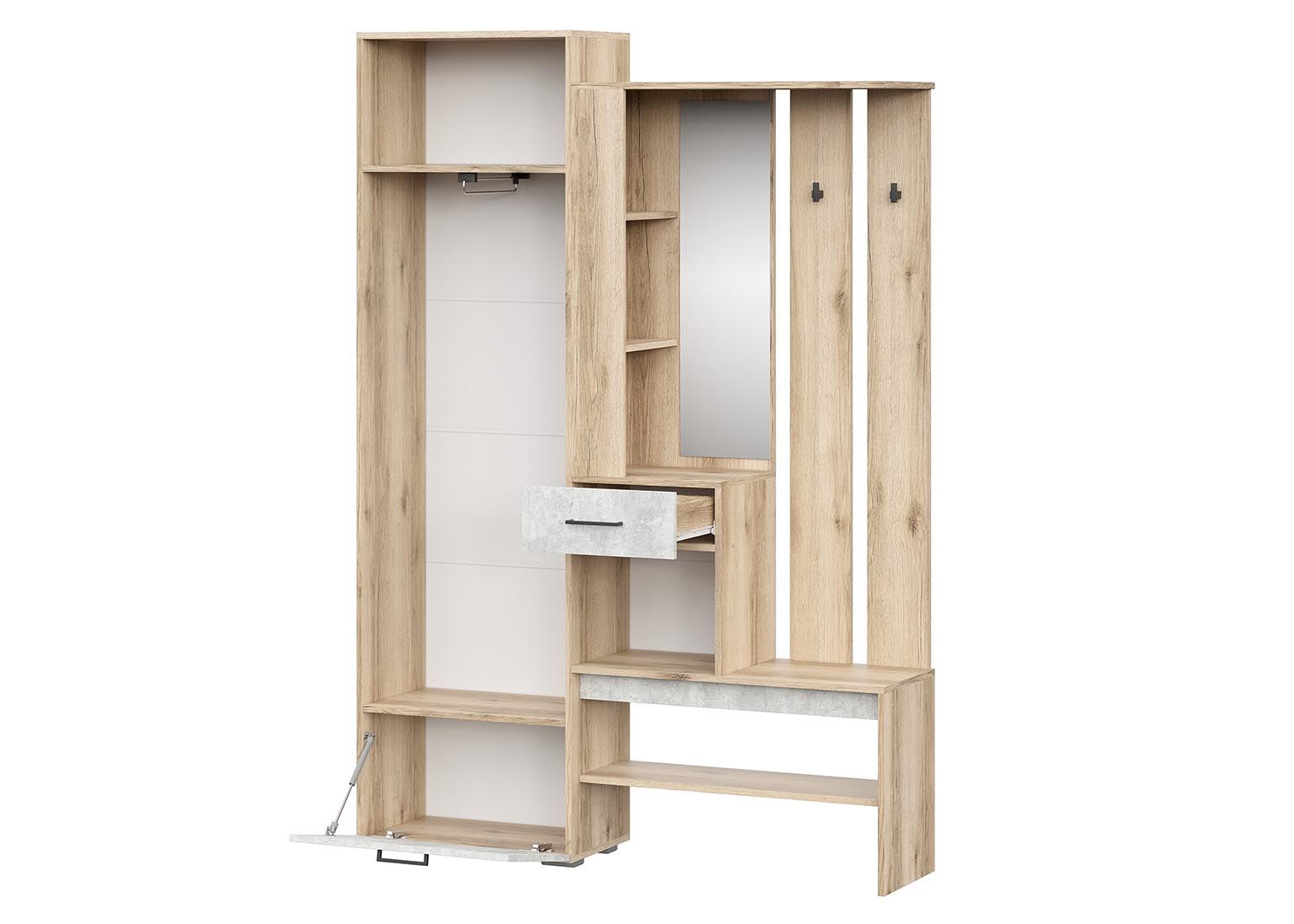 Прихожая «Фаворит» представляет собой функциональное готовое решение для обустройства входной зоны квартиры или жилого дома. Изделие идеально впишется даже в малогабаритную прихожую, при этом включает в себя всё необходимое: