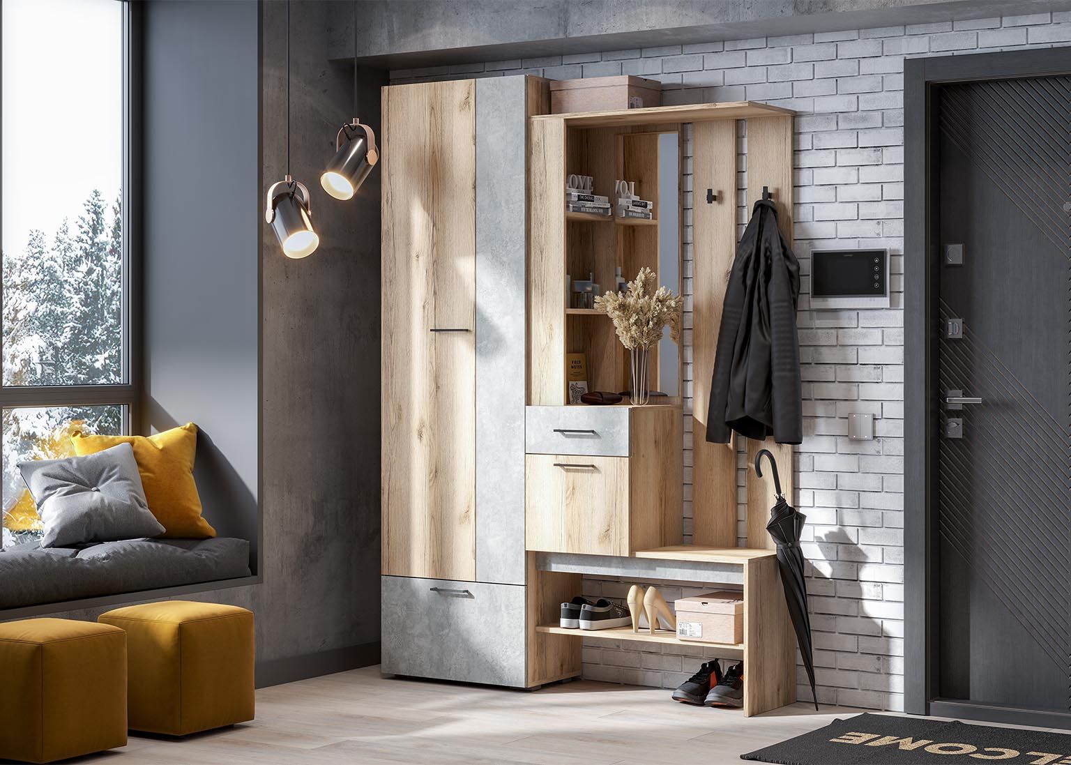 Фаворит - 1 прихожая Дуб Делано/Цемент светлый