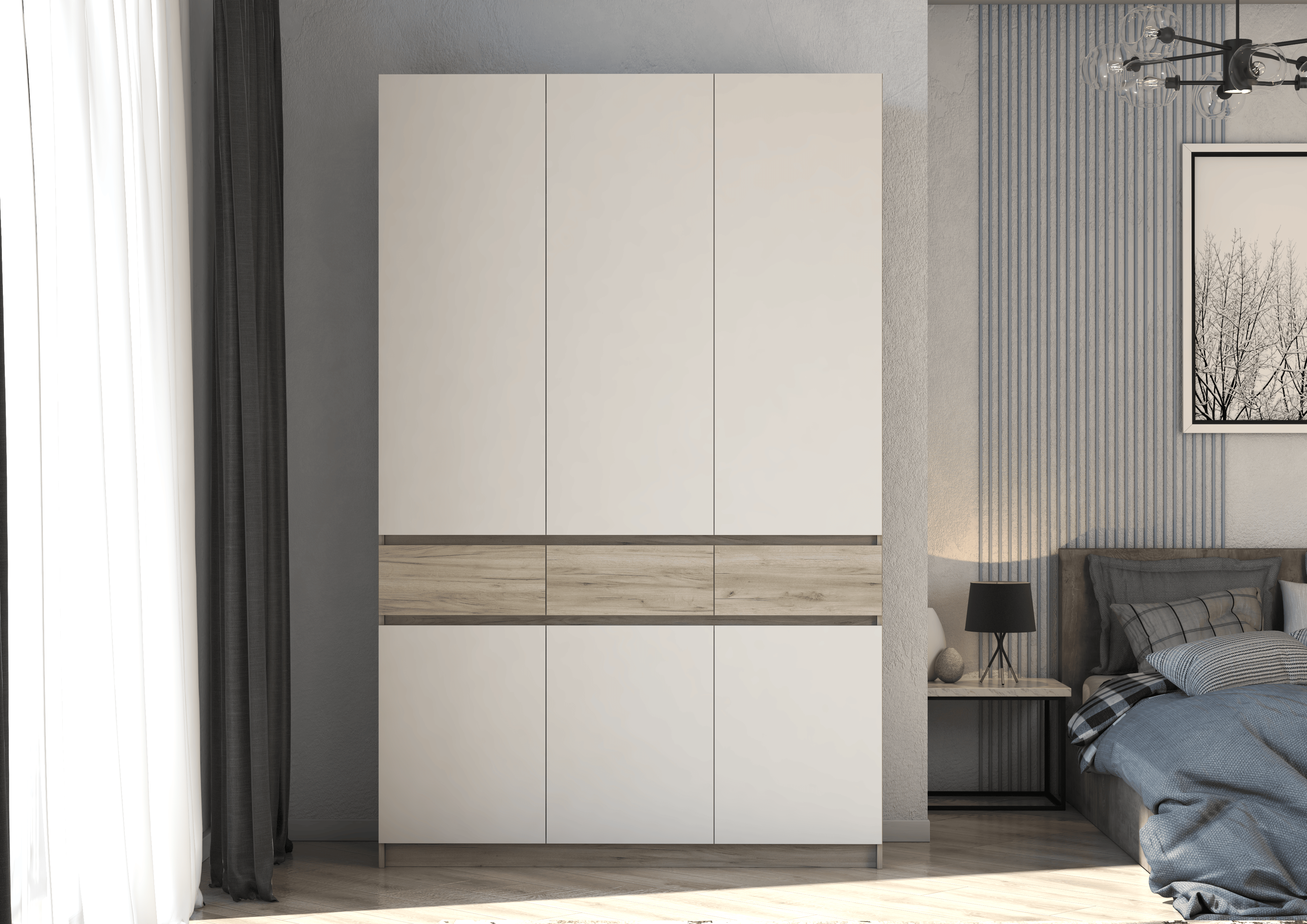 Бостон Шкаф ШК-002 трехстворчатый ЛДСП Дуб крафт серый/Кашемир