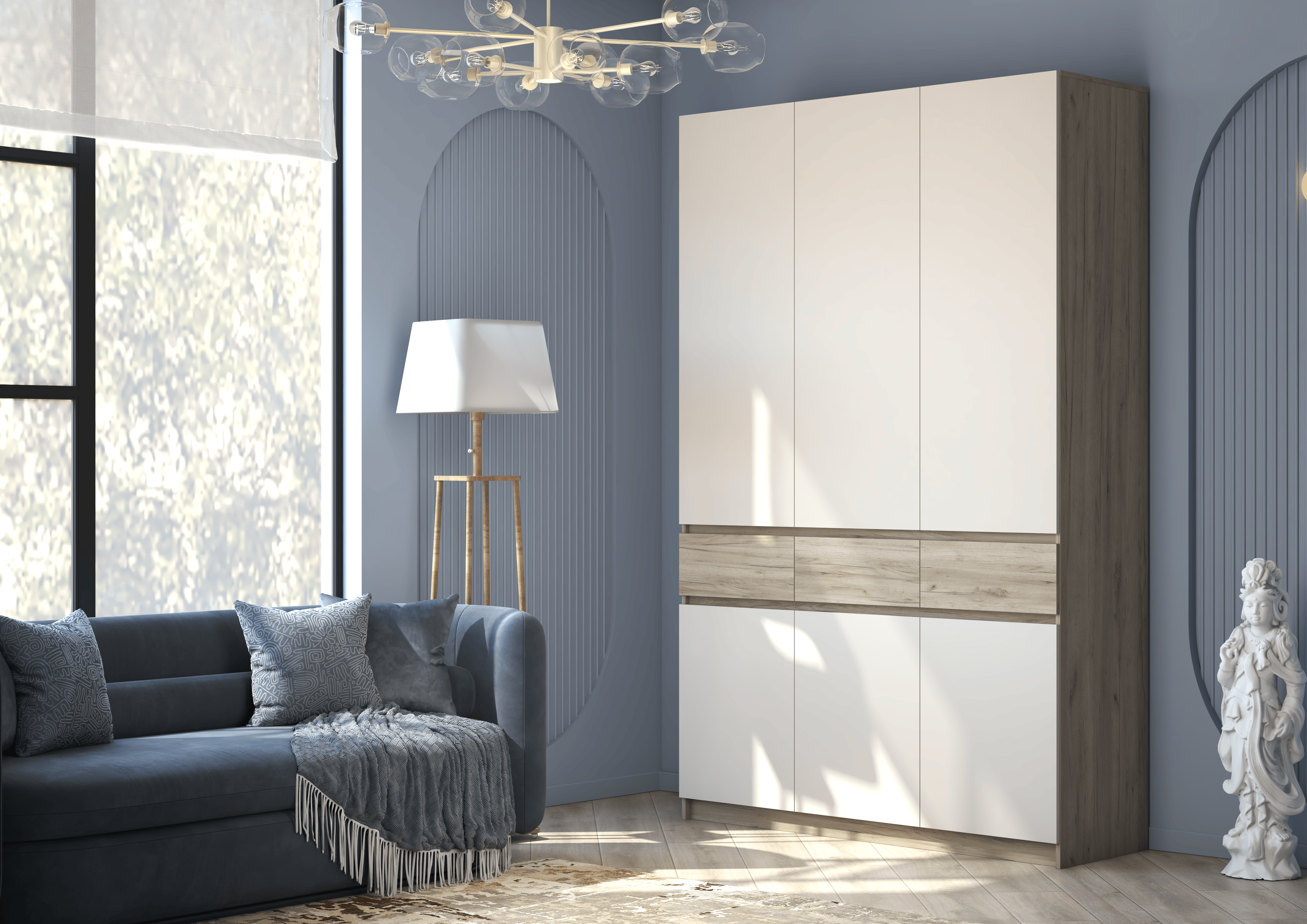 Этот трехстворчатый шкаф – идеальный выбор для обладателя большого гардероба. Более того, шкафы серии Бостон можно комбинировать между собой, и из нескольких изделий этой линейки легко можно создать крайне емкую систему хранения домашних вещей.
