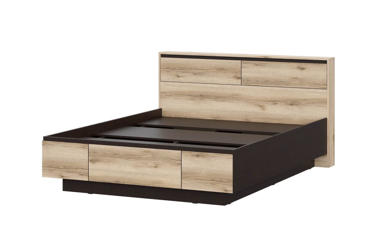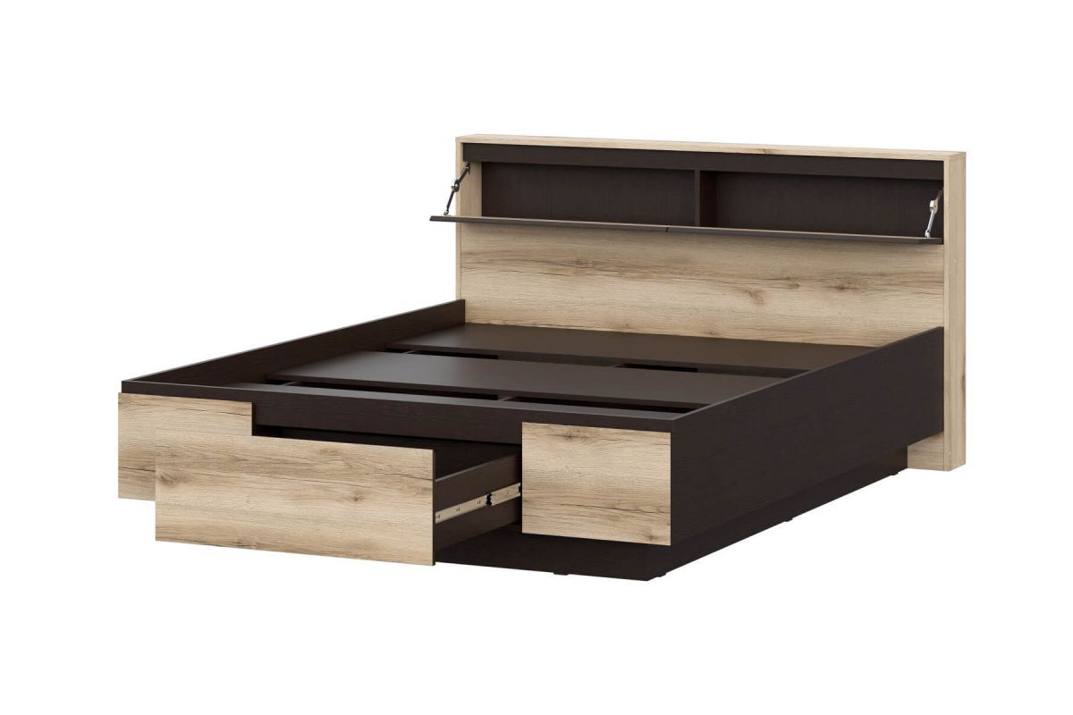 Берген кровать 1,6м с ящиками для хранения и кроватным столиком Дуб делано/Венге (с настилом)