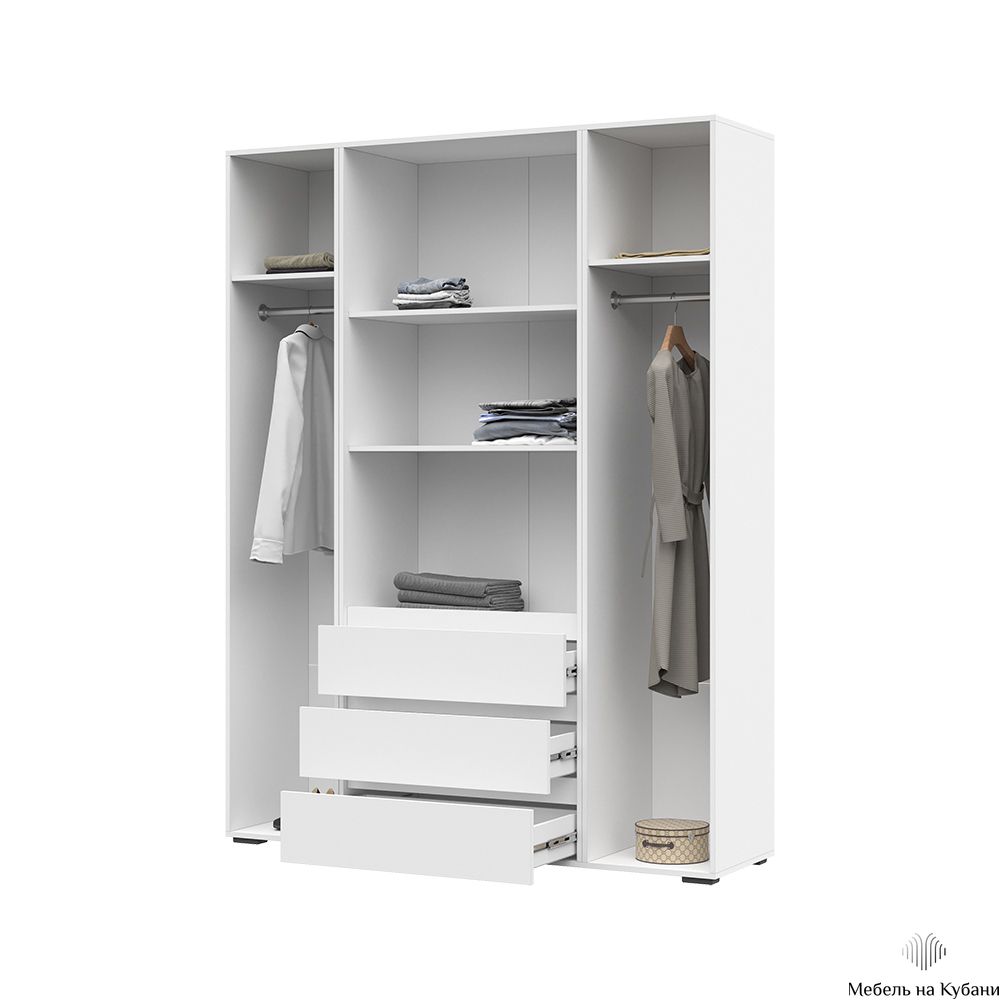 Хелен ШК 05 шкаф 4-х створчатый с ящиками Белый
