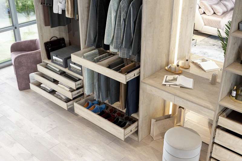 Ящик имеет ширину 968 см, высоту 16 см и глубину 57 см, что позволяет хранить в нем множество вещей, таких как белье, одежда, обувь и аксессуары. Он легко выдвигается и закрывается благодаря плавным шариковым направляющим.