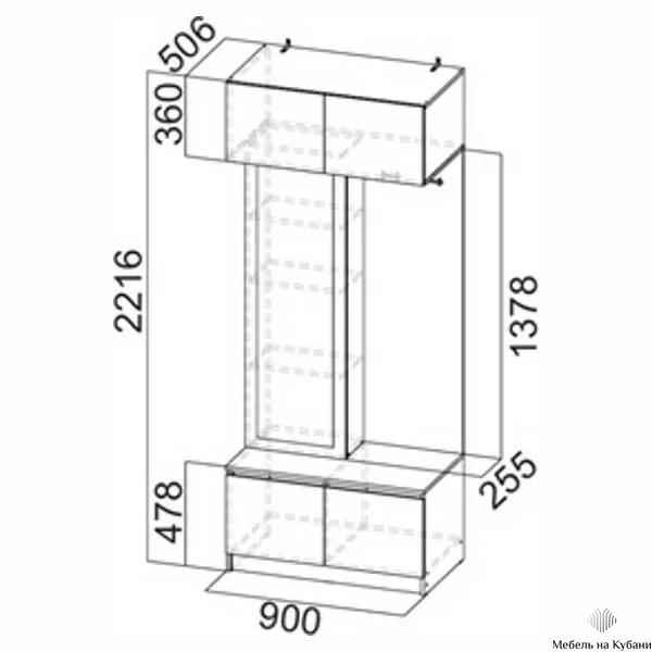 Габариты: (ШхВхГ): 900*2216*506 мм