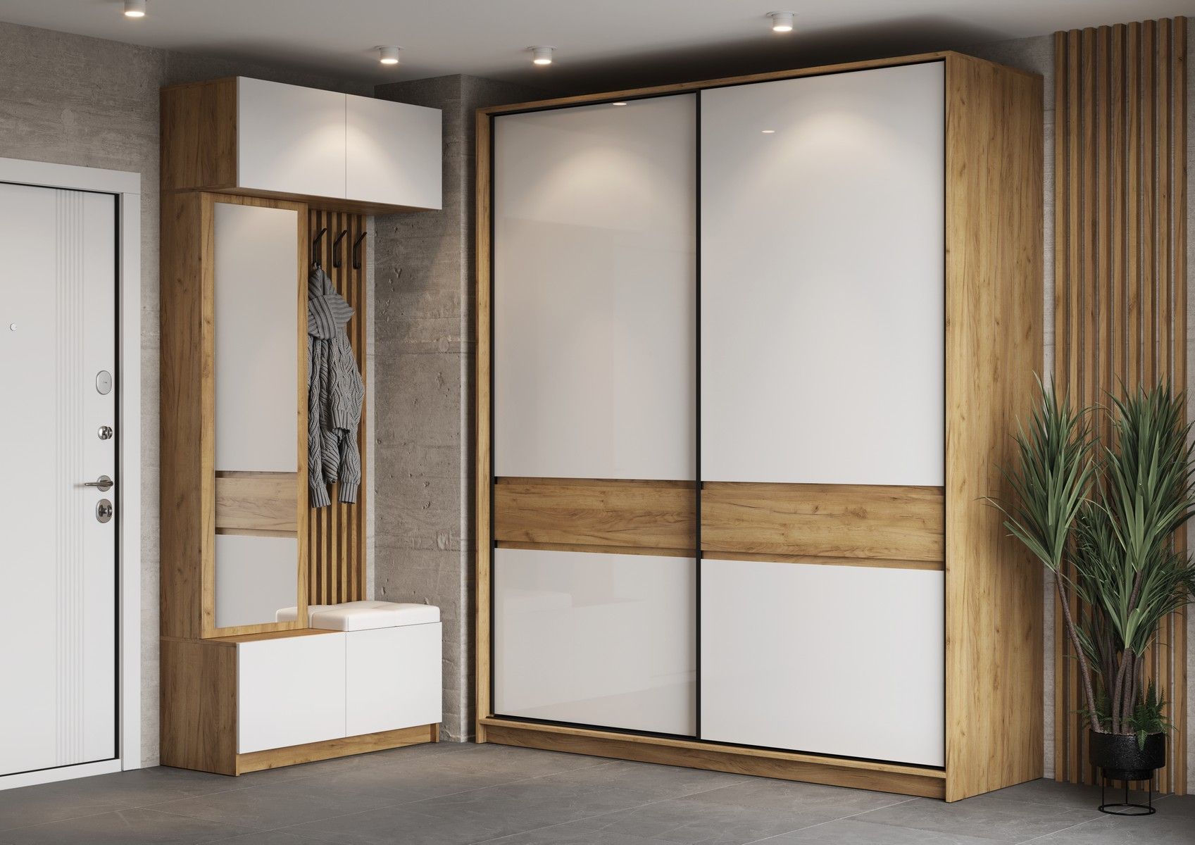 ПроизводительСтильКонструкцияшкаф-купеМатериал корпусаЛДСПМатериал фасадаМДФЧисло дверей2ДверцыраздвижныеШтанга для вешалокестьМодульныйестьШирина2002 ммВысота2360 ммГлубина510 ммЦветДуб золотой/Белый глянец