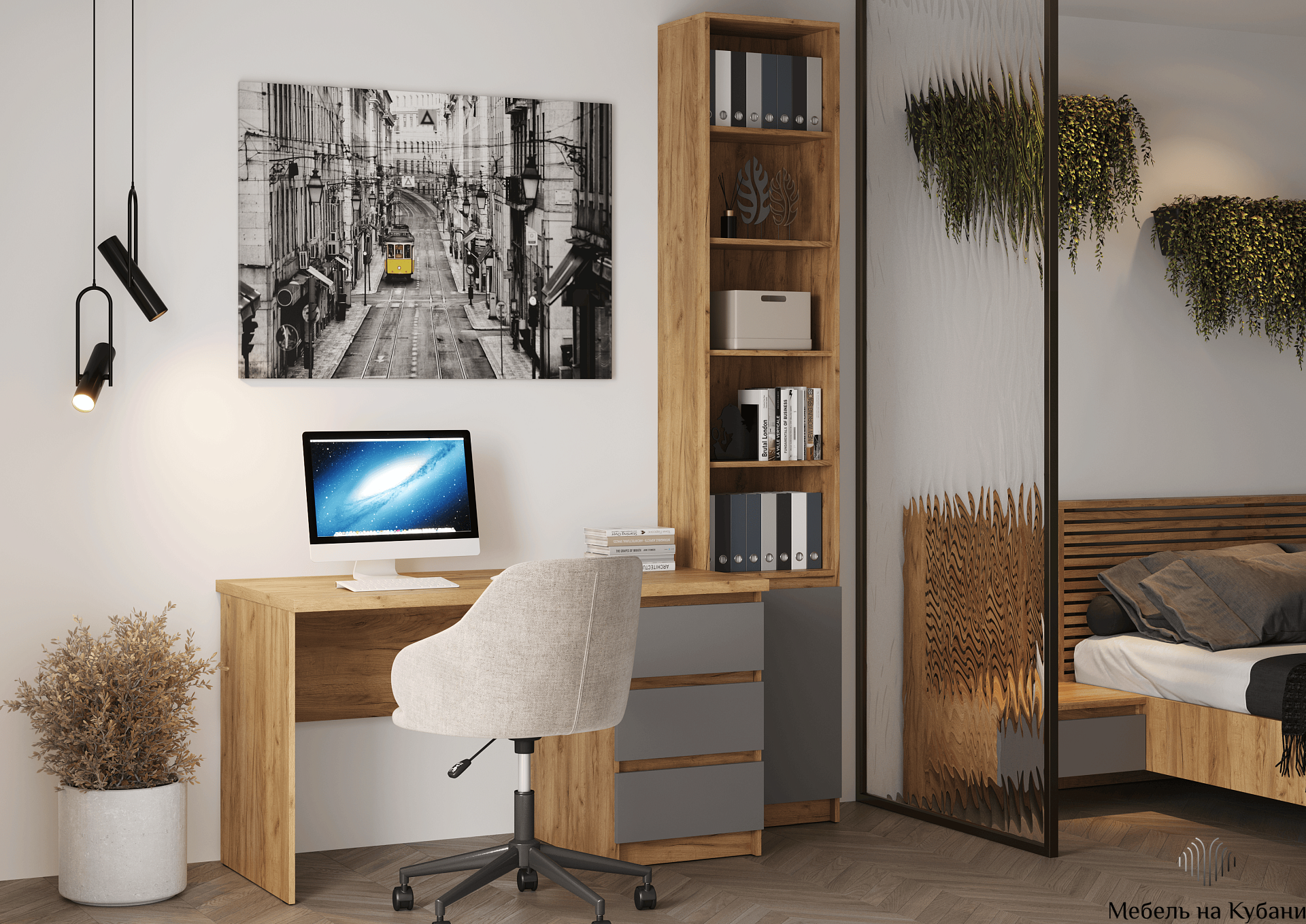 Цвет: Дуб Крафт золотой Фасад ЛДСП – Серый Шифер