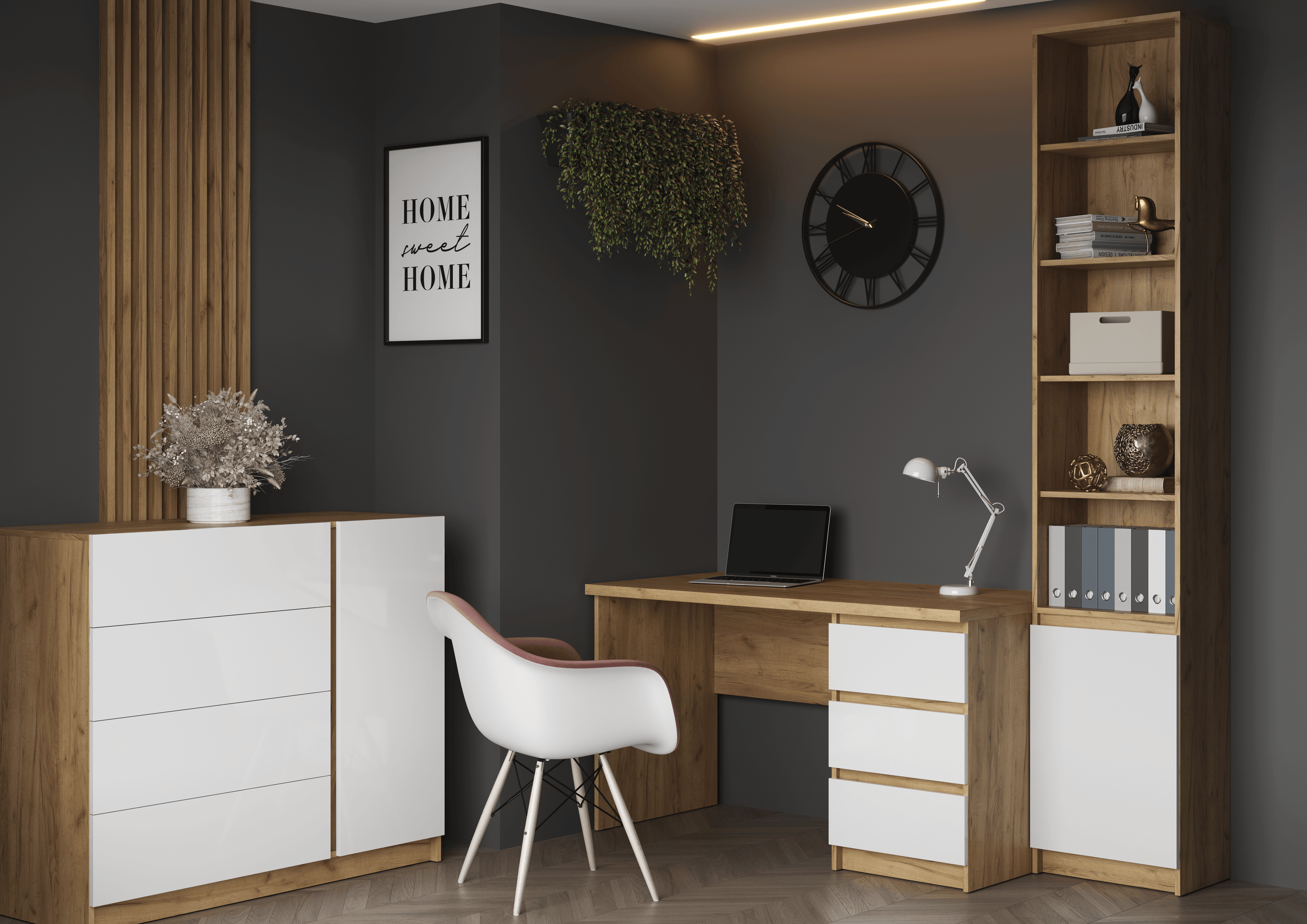 Бостон стол письменный Дуб Крафт золотой/Белый глянец