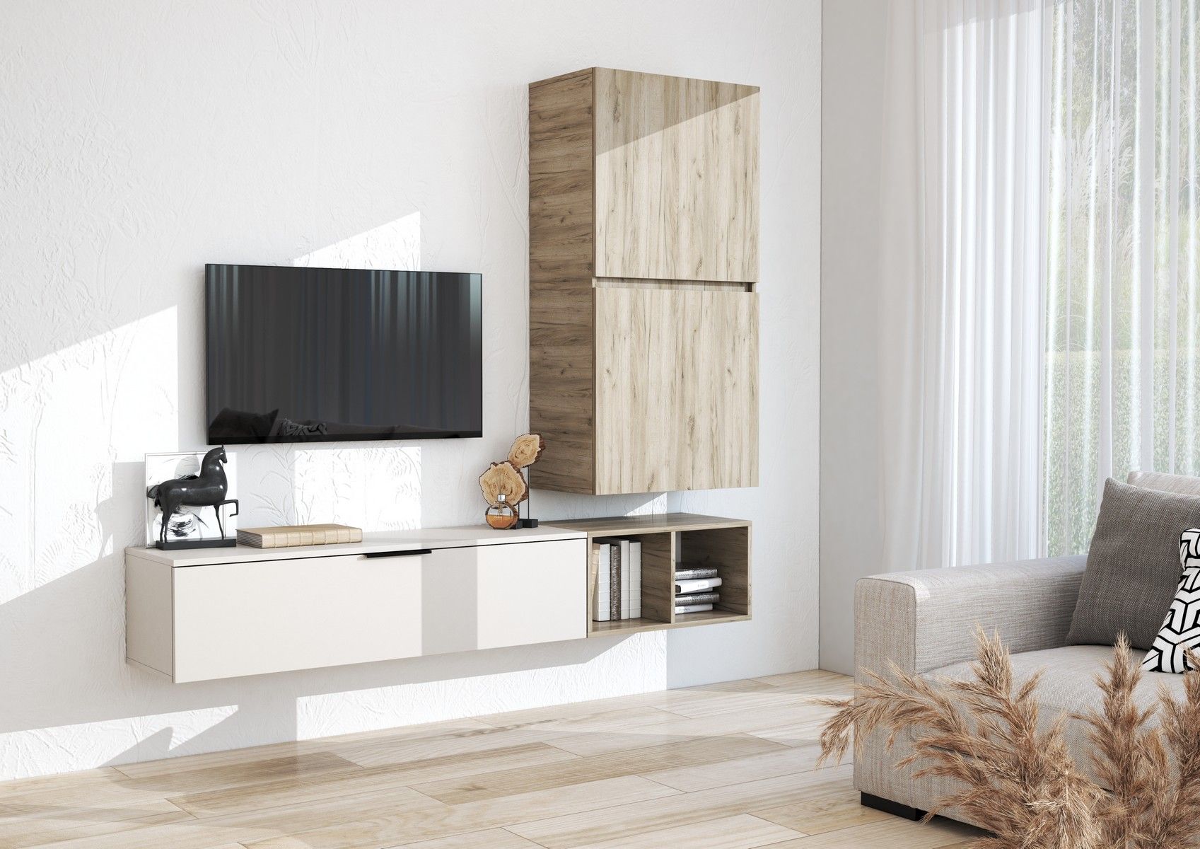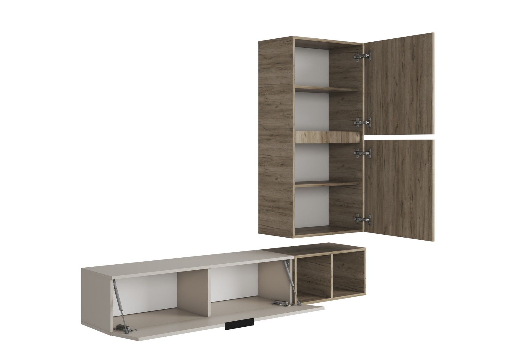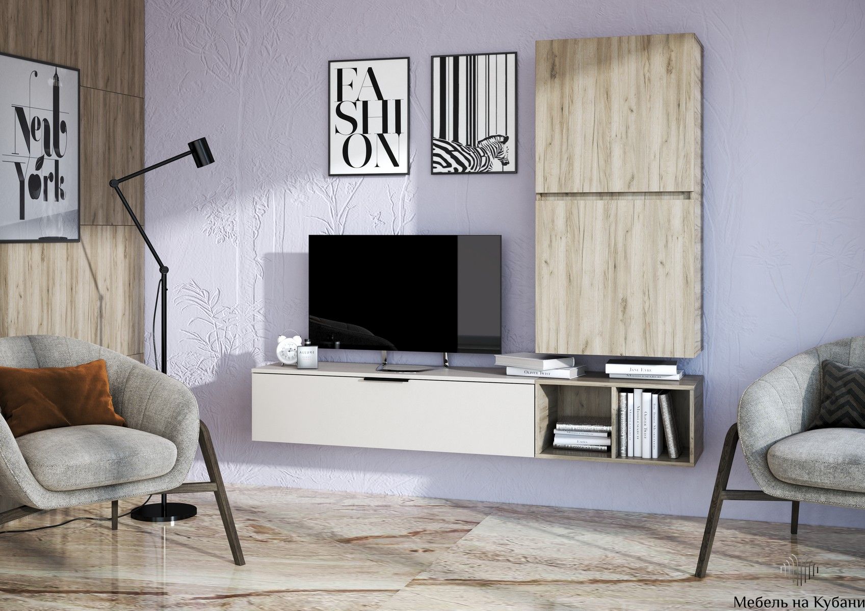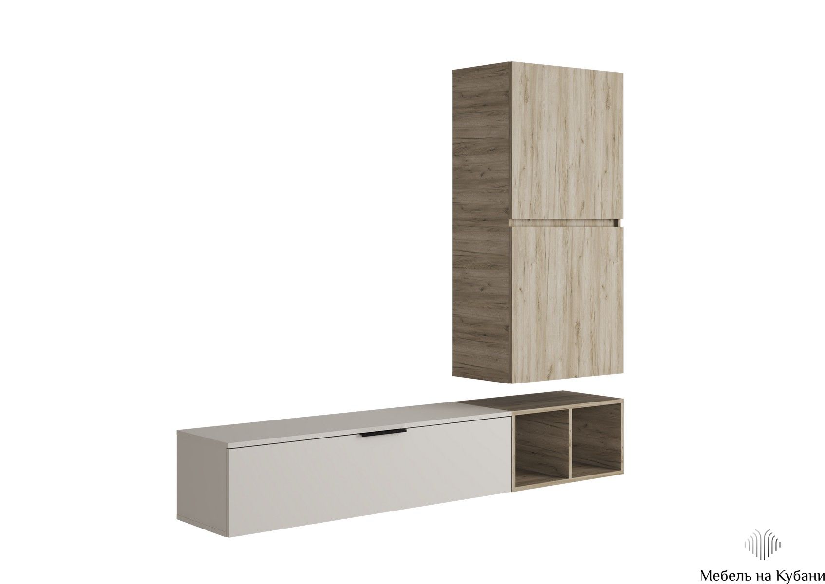 независимых модулей: навесного шкафа с 2-мя глухими фасадами, тумбы навесной и открытой