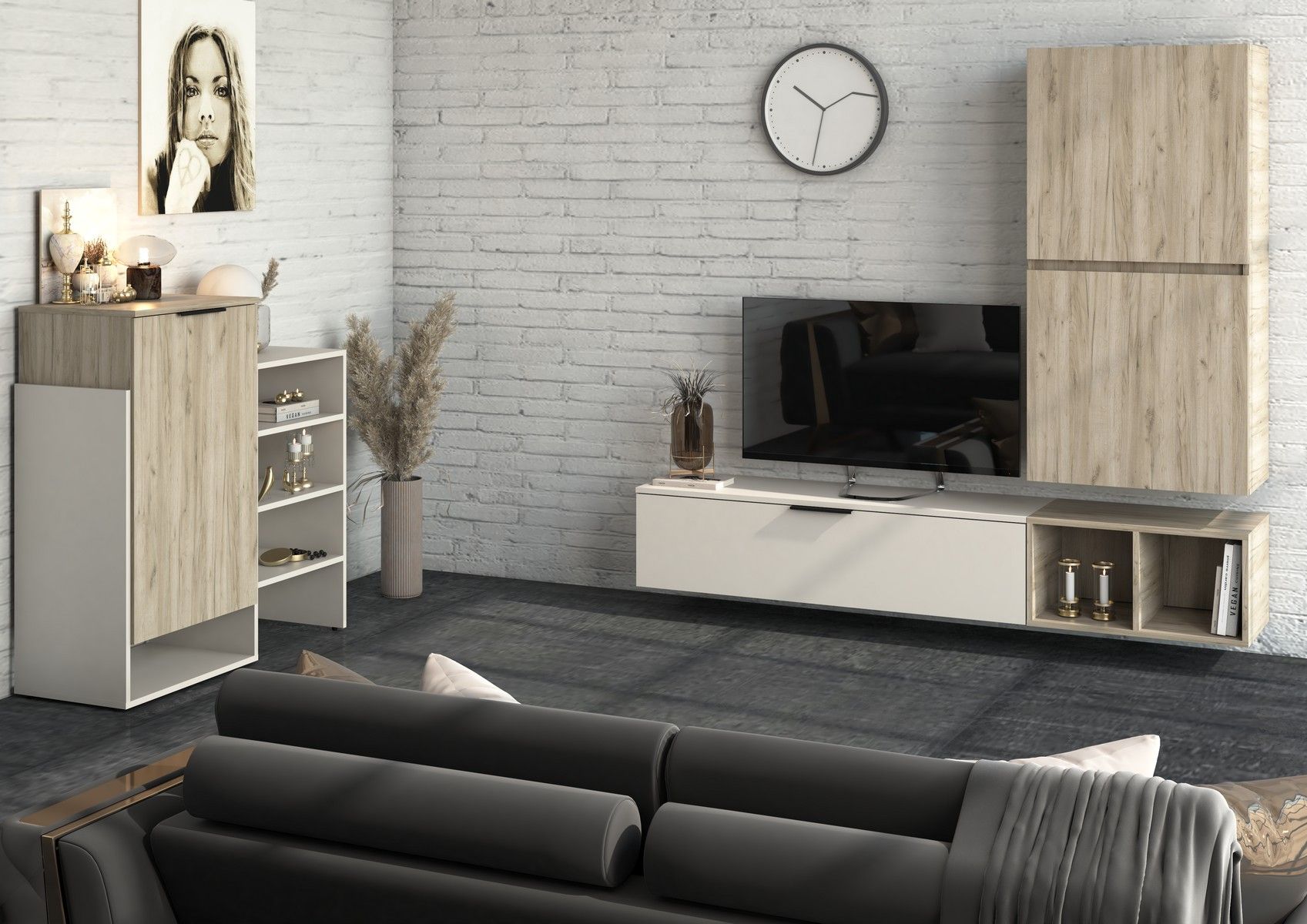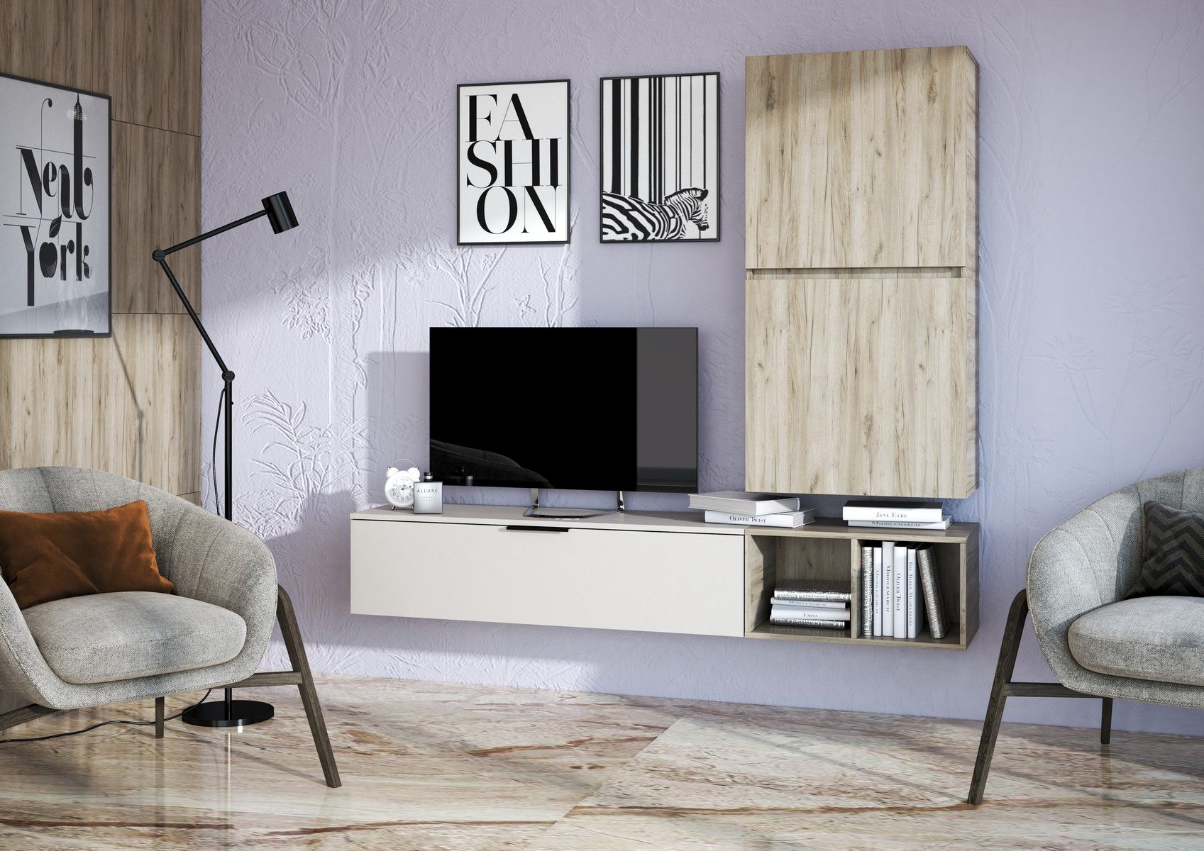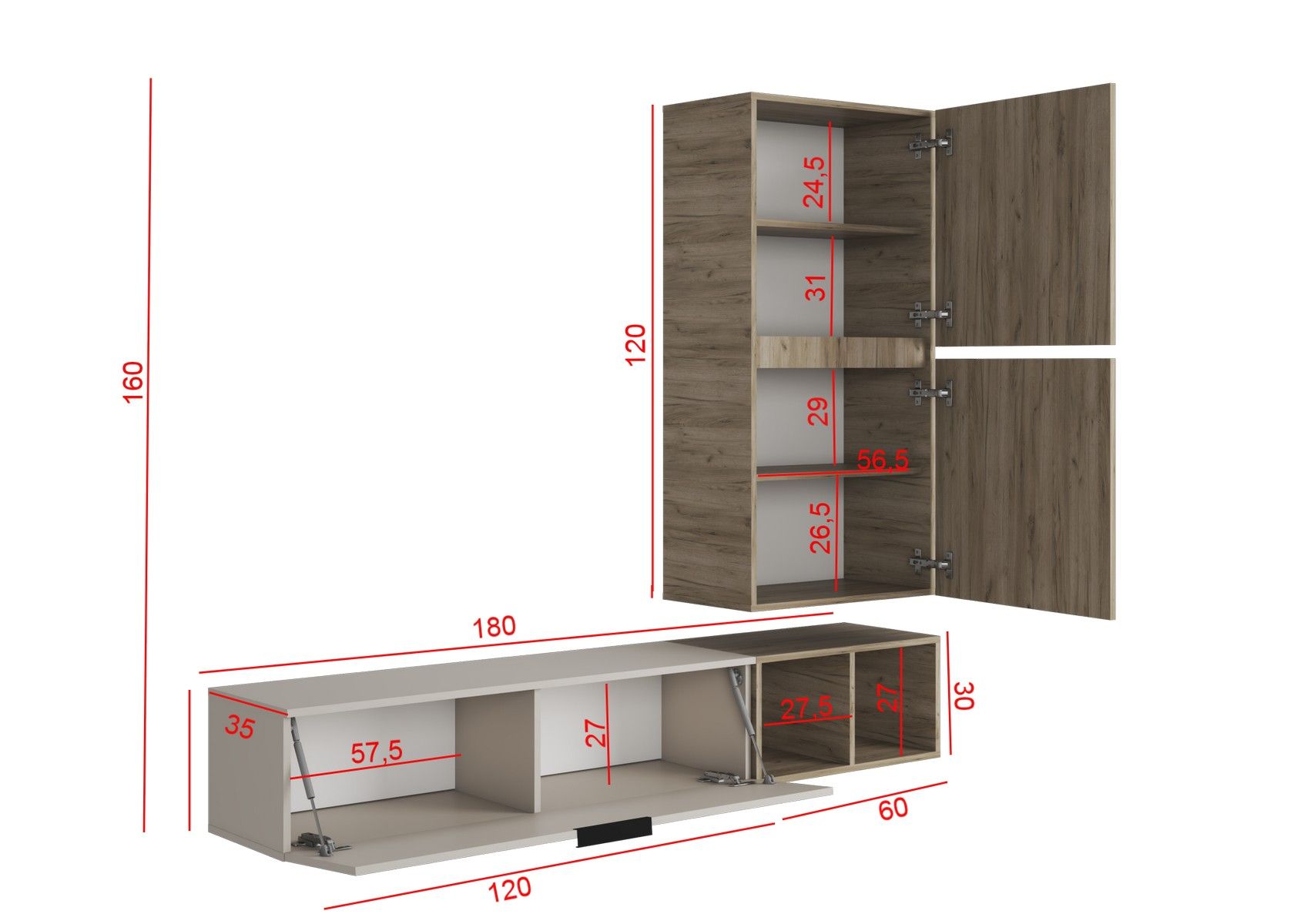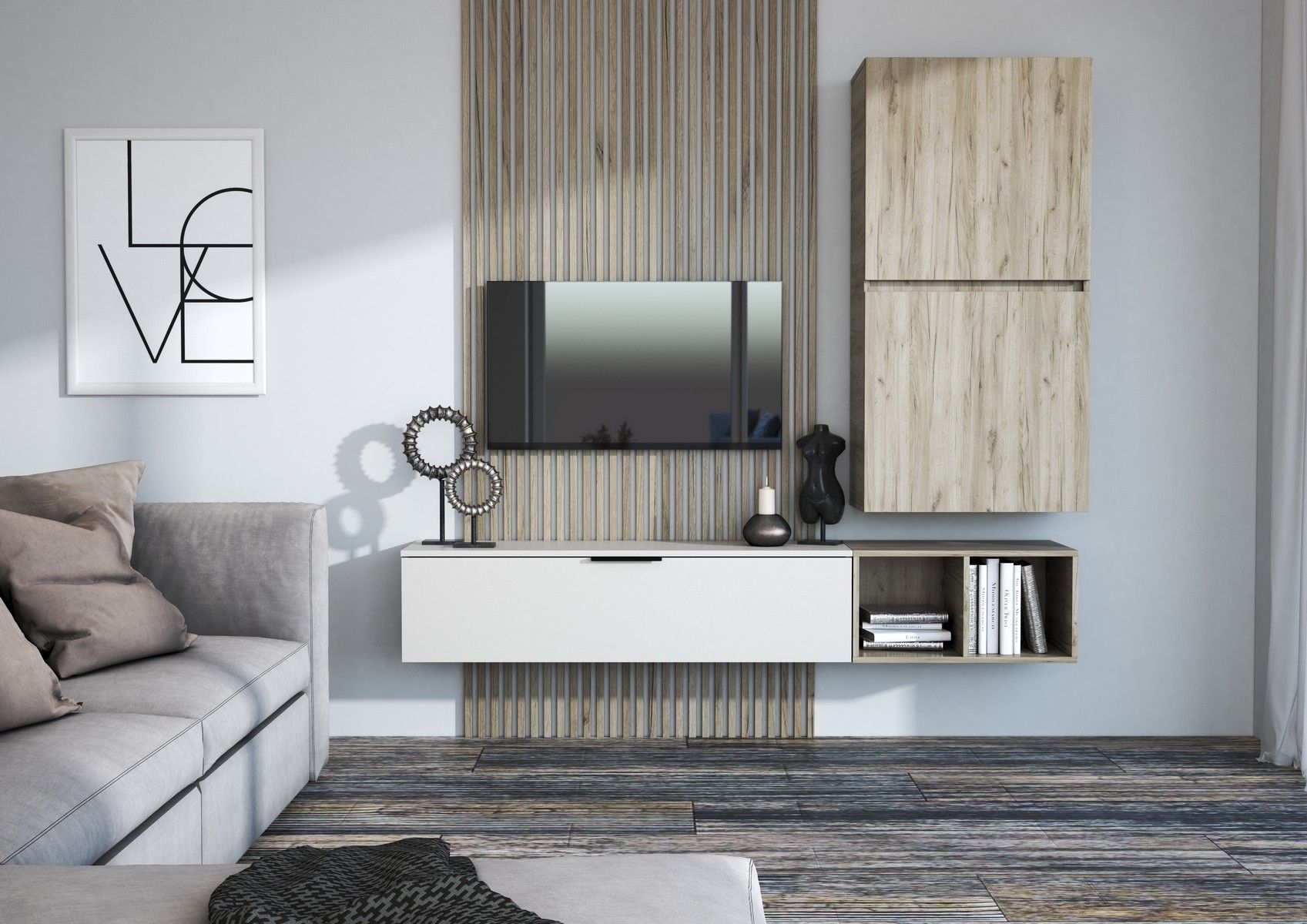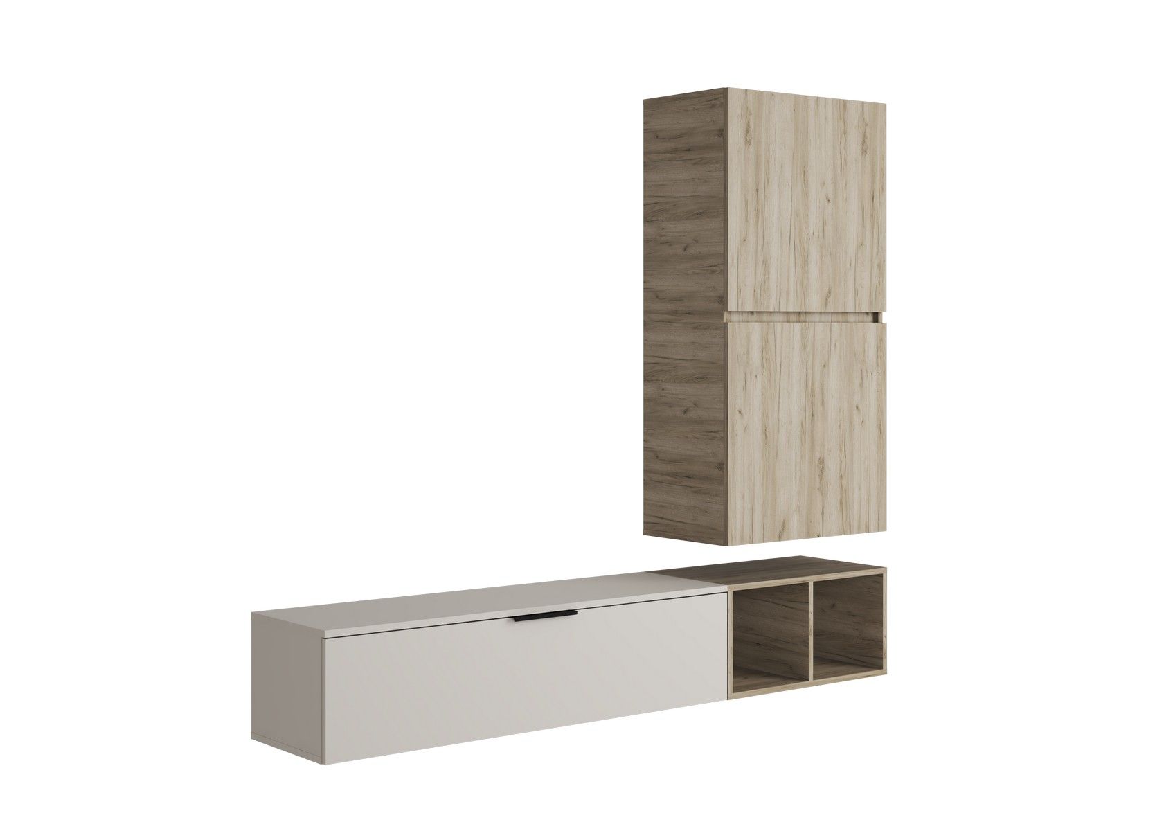 независимых модулей: навесного шкафа с 2-мя глухими фасадами, тумбы навесной и открытой