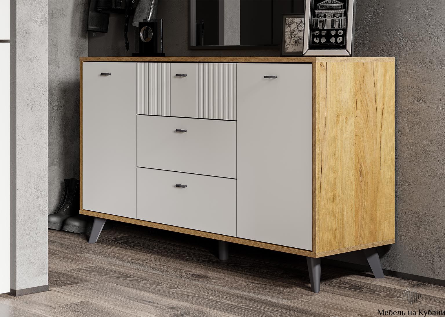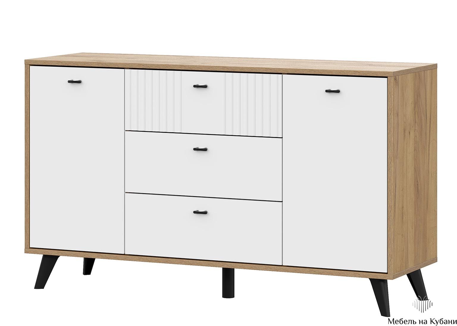Милан Комод 3 ящика двухстворчатый Дуб Золотой/Белый матовый