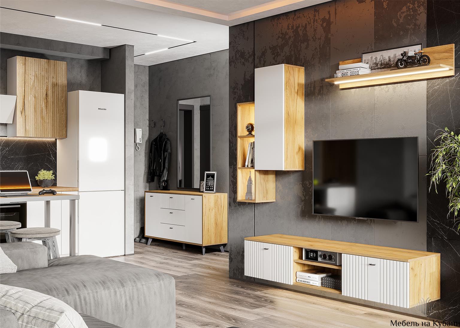 Цвет: Дуб Золотой/ МДФ Белый матовый