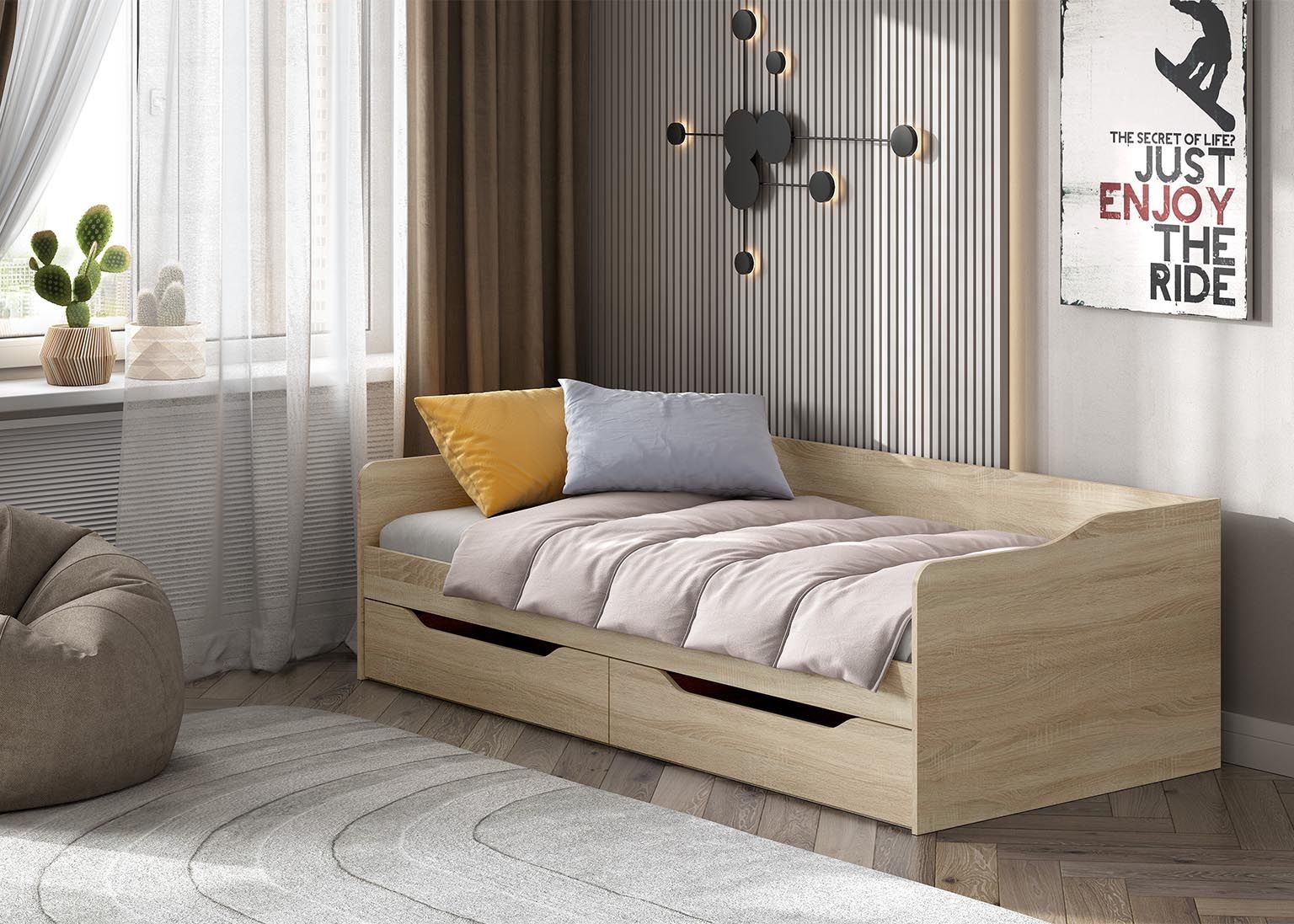 Кровать «КР 1» — оборудована двумя выдвижными ящиками.