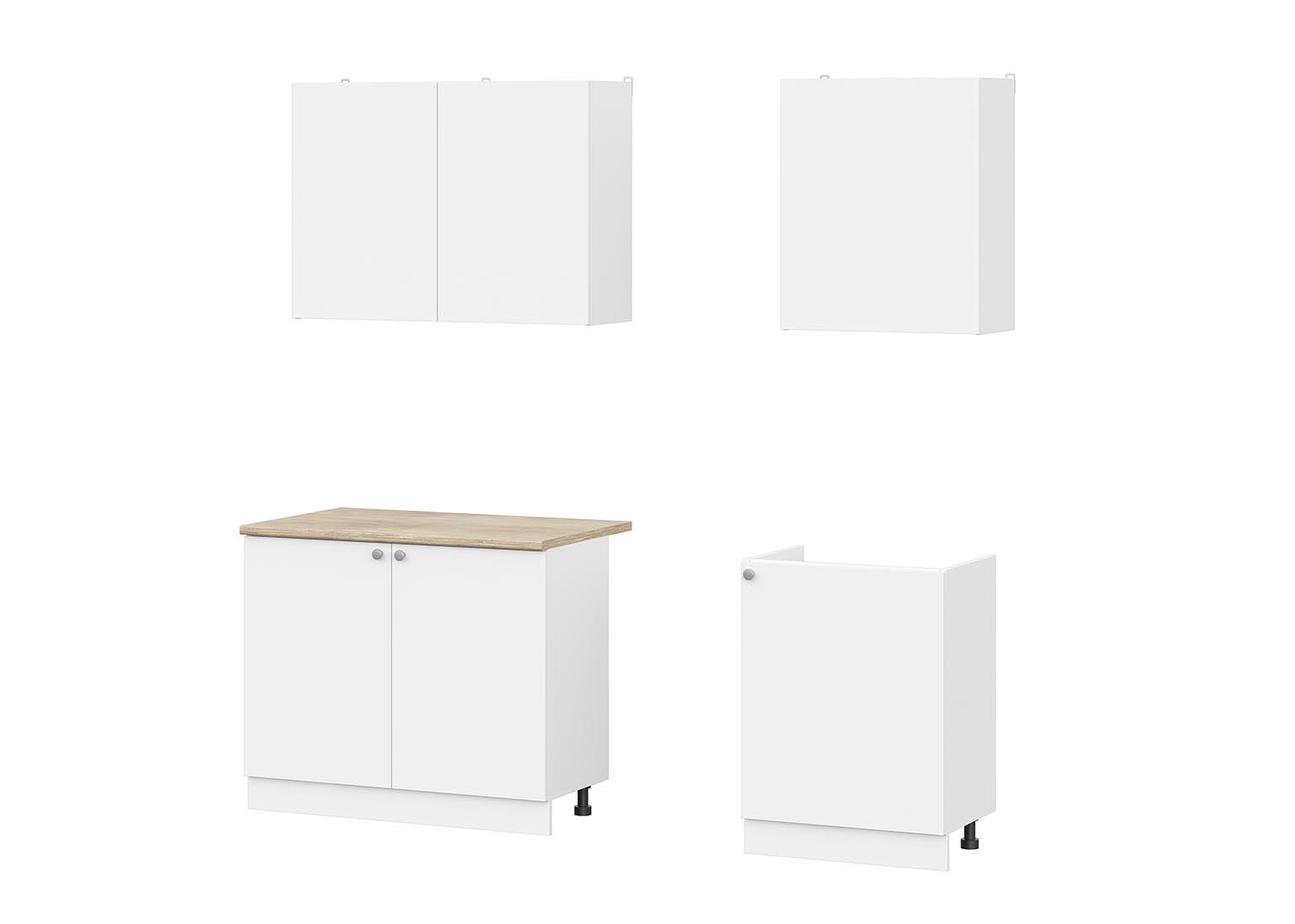 Кухня выполнена в цвете «Белый текстурный» и имеет следующие размеры: 1600*843/716*600/296 мм.