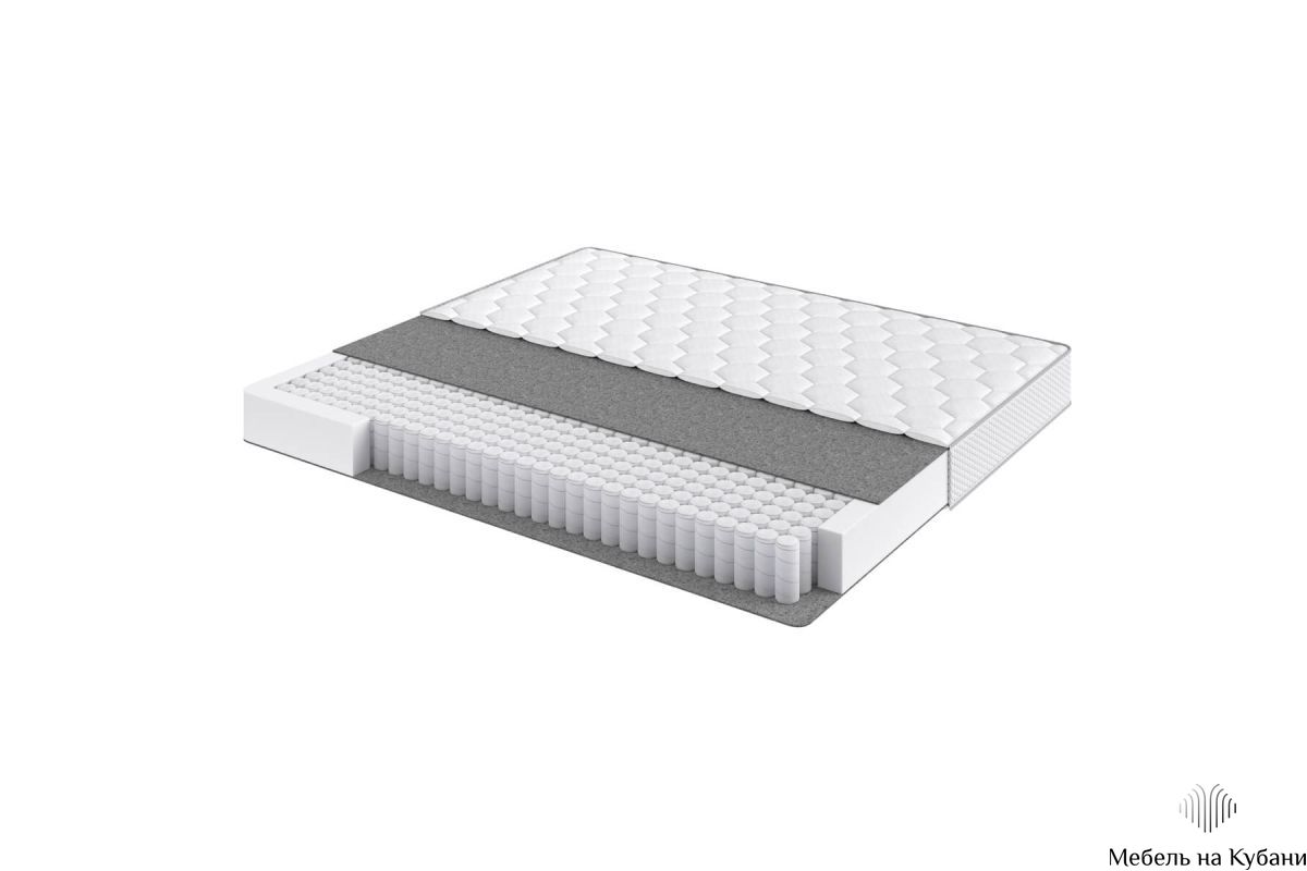 - Слой 3: Независимый пружинный блок, высота блока 140 мм, диаметр проволоки 1,6 мм, диаметр блока 61 мм. Каждая пружина помещена в специальный карман из спанбонда, карманы соединены между собой с помощью нескольких капель клея, что позволяет всей системе быть единой, но в то же время гибкой, каждая пружина работает независимо от соседних, обеспечивая адаптивную поддержку тела спящего человека, спанбонд исключают трение и скрип металлических элементов. Периметр: Усилен коробом из Orto-Soft