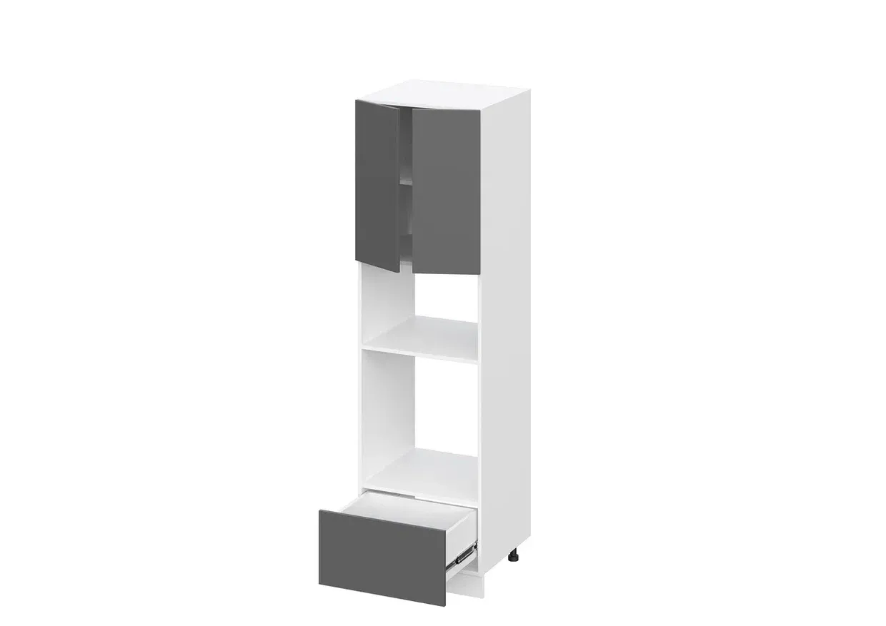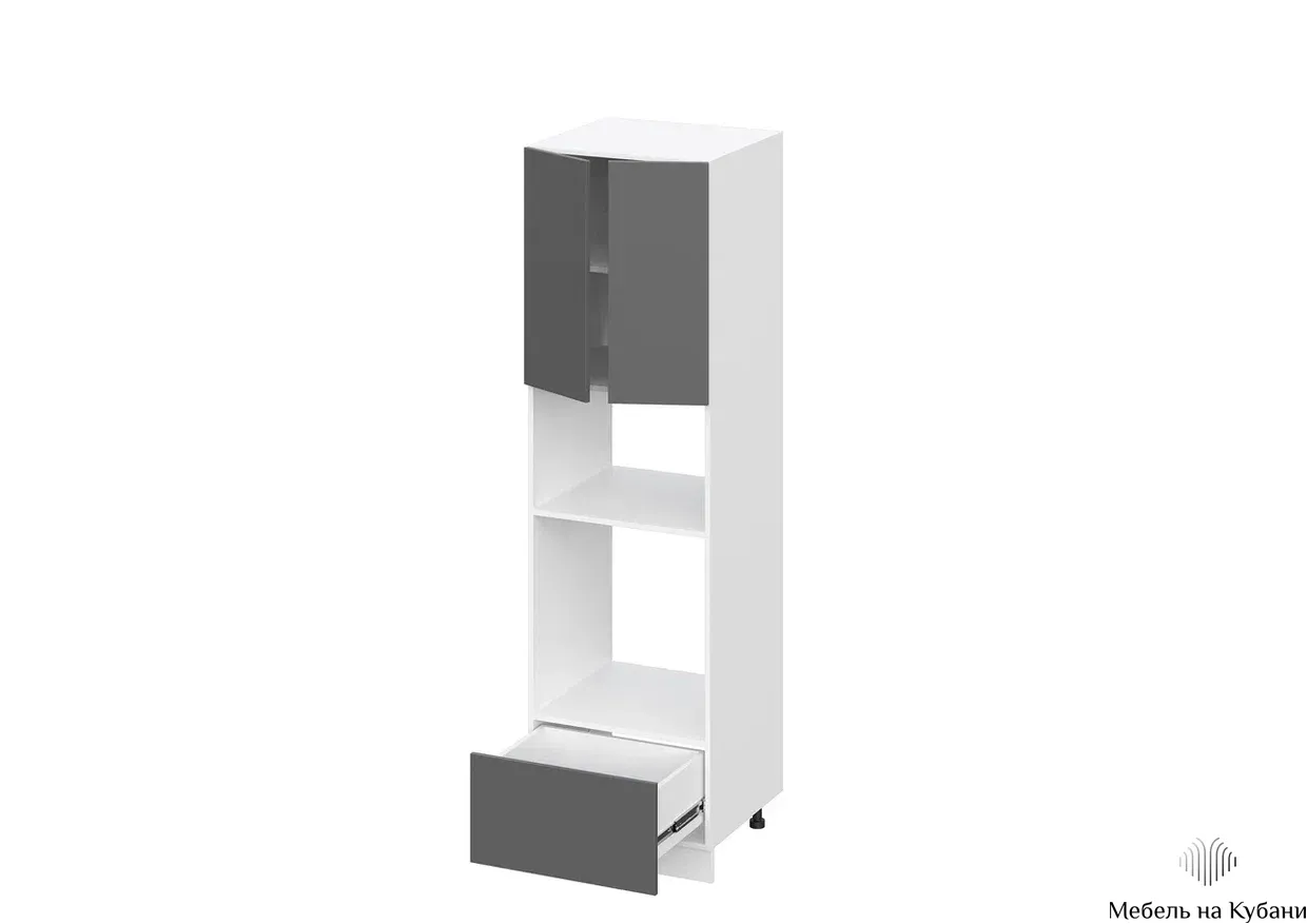Пенал, шириной 600 мм с распашными глухими фасадами и выдвижным ящиком, нишей под духовку и микроволновку