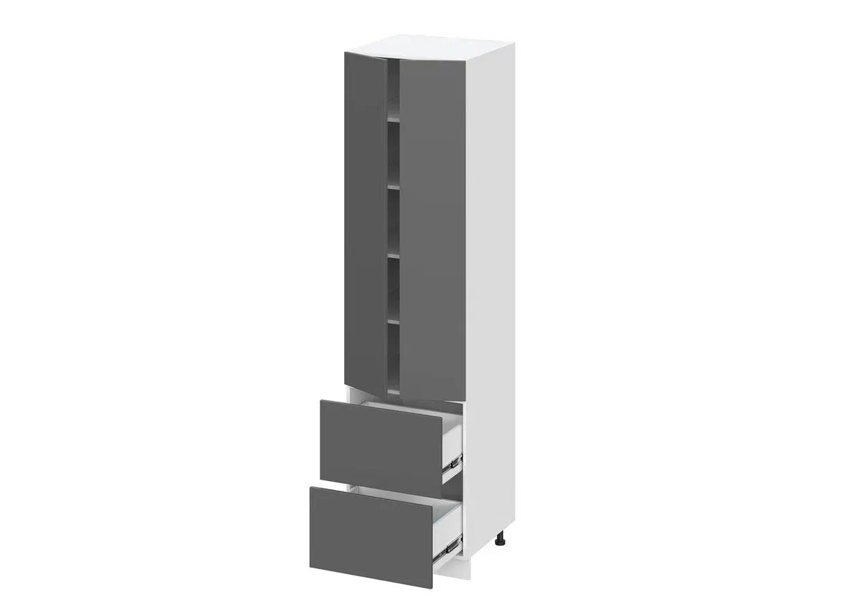 Пенал, шириной 600 мм с распашными глухими фасадами и выдвижными ящиками