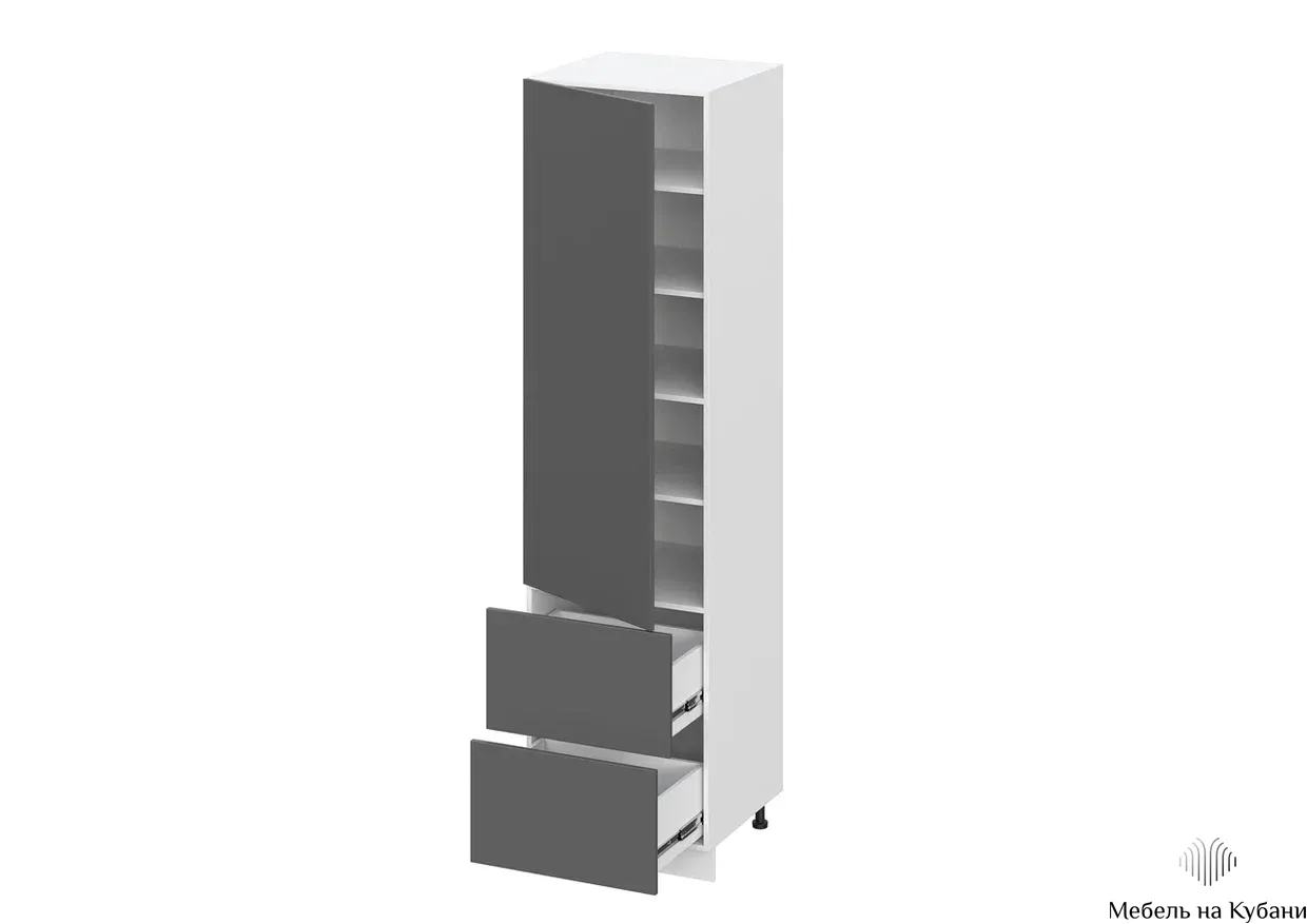 Пенал, шириной 600 мм с распашным глухим фасадом и выдвижными ящиками