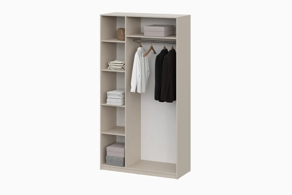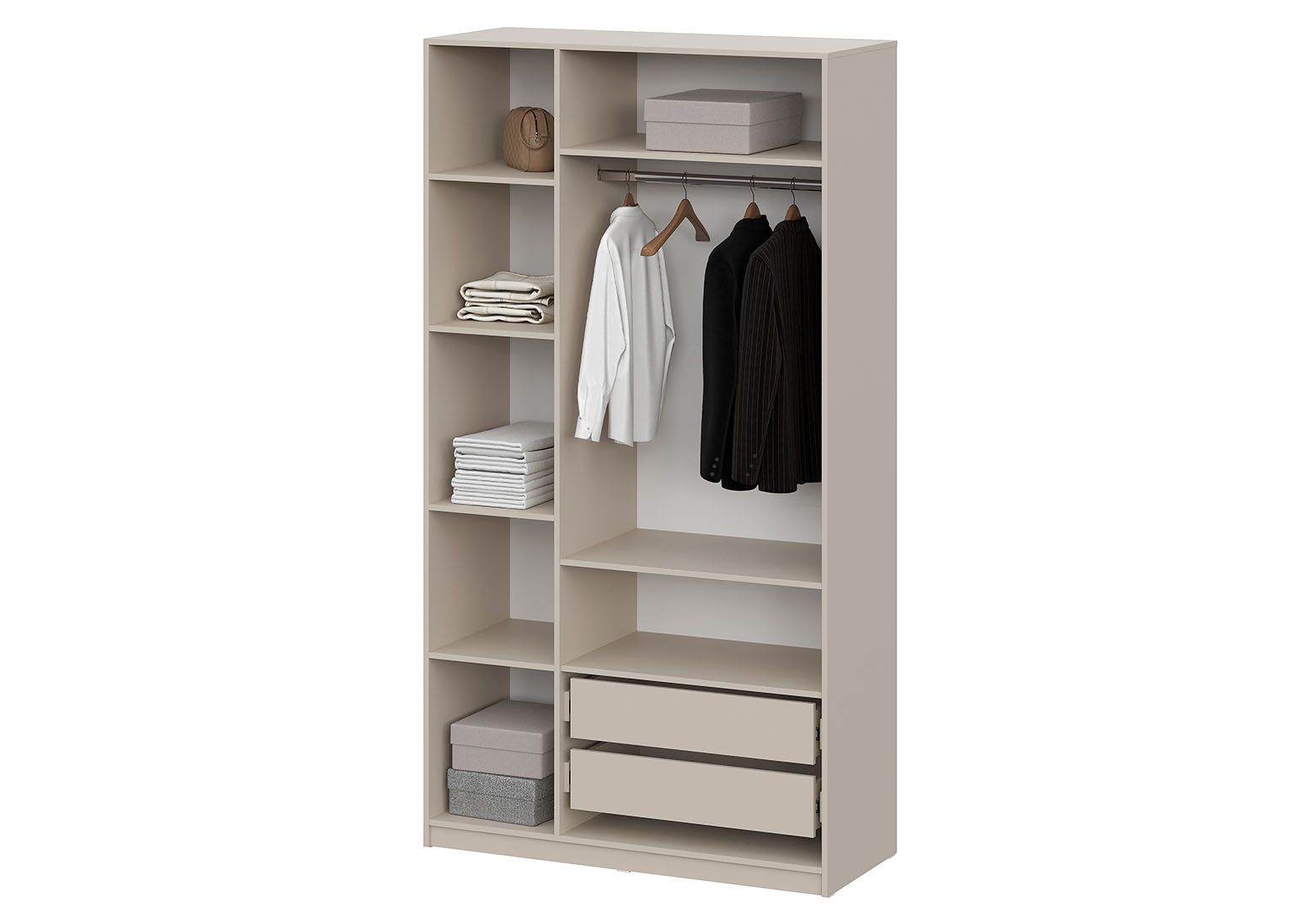 Дополнительные опции включают комплект полок и комплект ящиков, что позволяет настроить шкаф в соответствии с вашими потребностями. Вы можете установить до двух ящиков одновременно. Для наилучшей организации пространства и скрытия содержимого верхнего ящика мы рекомендуем также приобрести комплект полок. Все дополнительные элементы приобретаются отдельно, что даёт вам возможность гибко подходить к выбору конфигурации шкафа.