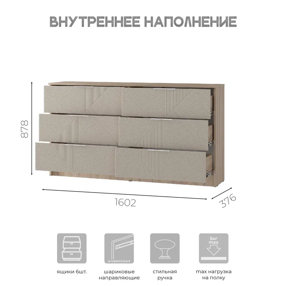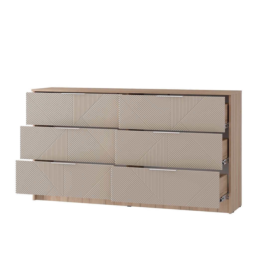 Комод «Эмилия» (КМ-04) – это идеальная альтернатива шкафу для спальни. Эта модель поможет уместить все постельное белье в одном месте, сэкономит пространство и сделает интерьер оригинальнее. Комод состоит из шести просторных ящиков.