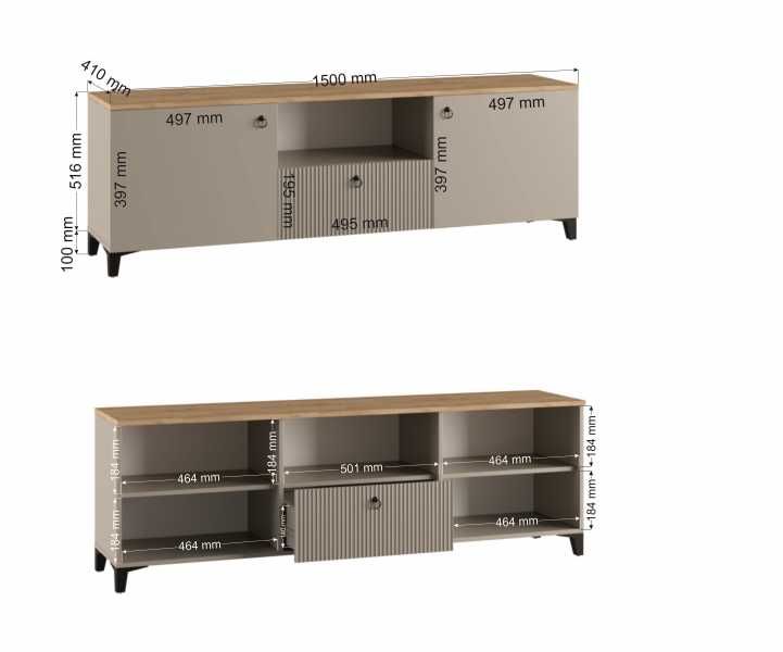 Ника ТВ тумба ПВШ 1500*516*410 (мдф бежевый мат-05 / лдсп кашемир + дуб делано)