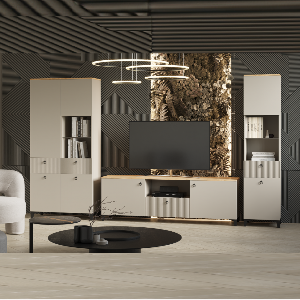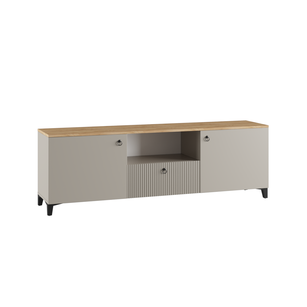 Ника ТВ тумба ПВШ 1500*516*410 (мдф бежевый мат-05 / лдсп кашемир + дуб делано)