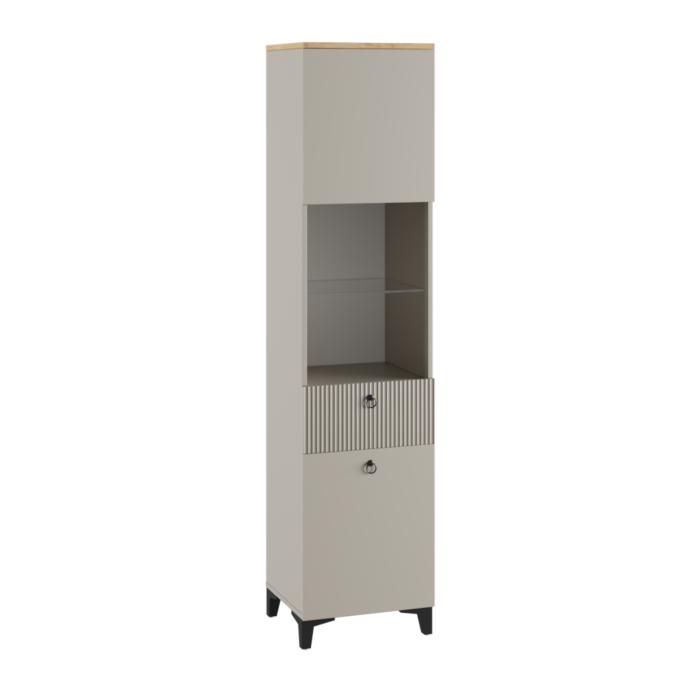 Ника Витрина со стеклом 800, 800*2100*410 (мдф бежевый мат-05 / лдсп кашемир+дуб делано)