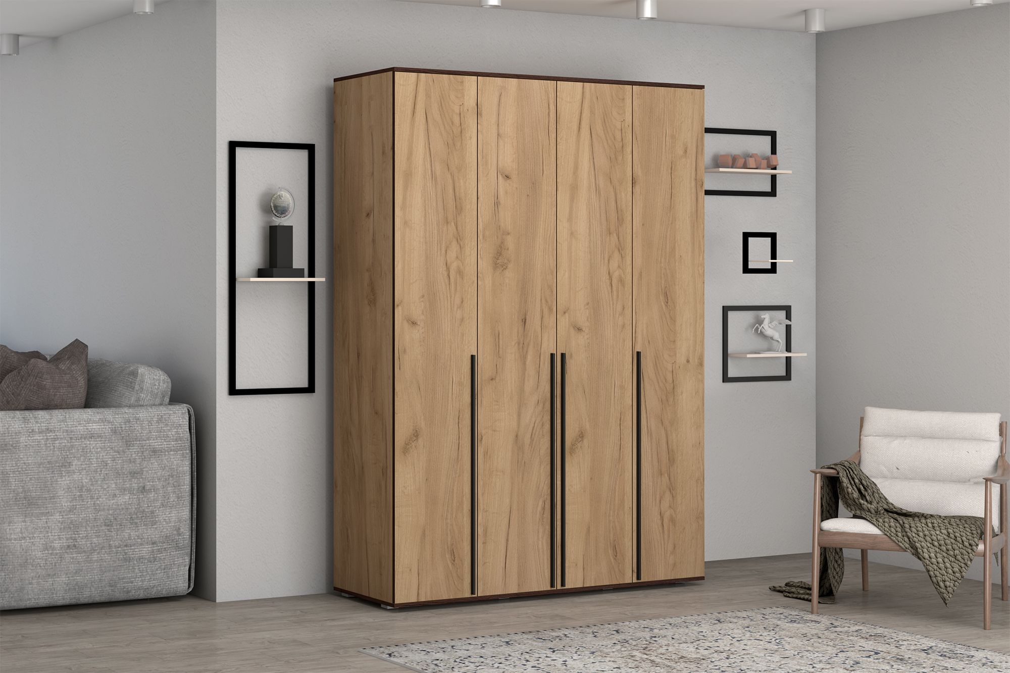 Строгий и функциональный распашной шкаф "Норден" идеально подойдет современного интерьера Вашей комнаты. Шкаф выполняется в трех цветовых решениях, что позволяет выбрать подходящее изделие на Ваш вкус. Все детали шкафа в цвете крафт золотой и крафт белый отделаны контрастной кромкой цвета венге и графит соответственно, что в сочетании с черной металлической ручкой подчеркивает модный дизайн данного шкафа. Шкаф в белом цвете создает иллюзию легкости и невесомости.