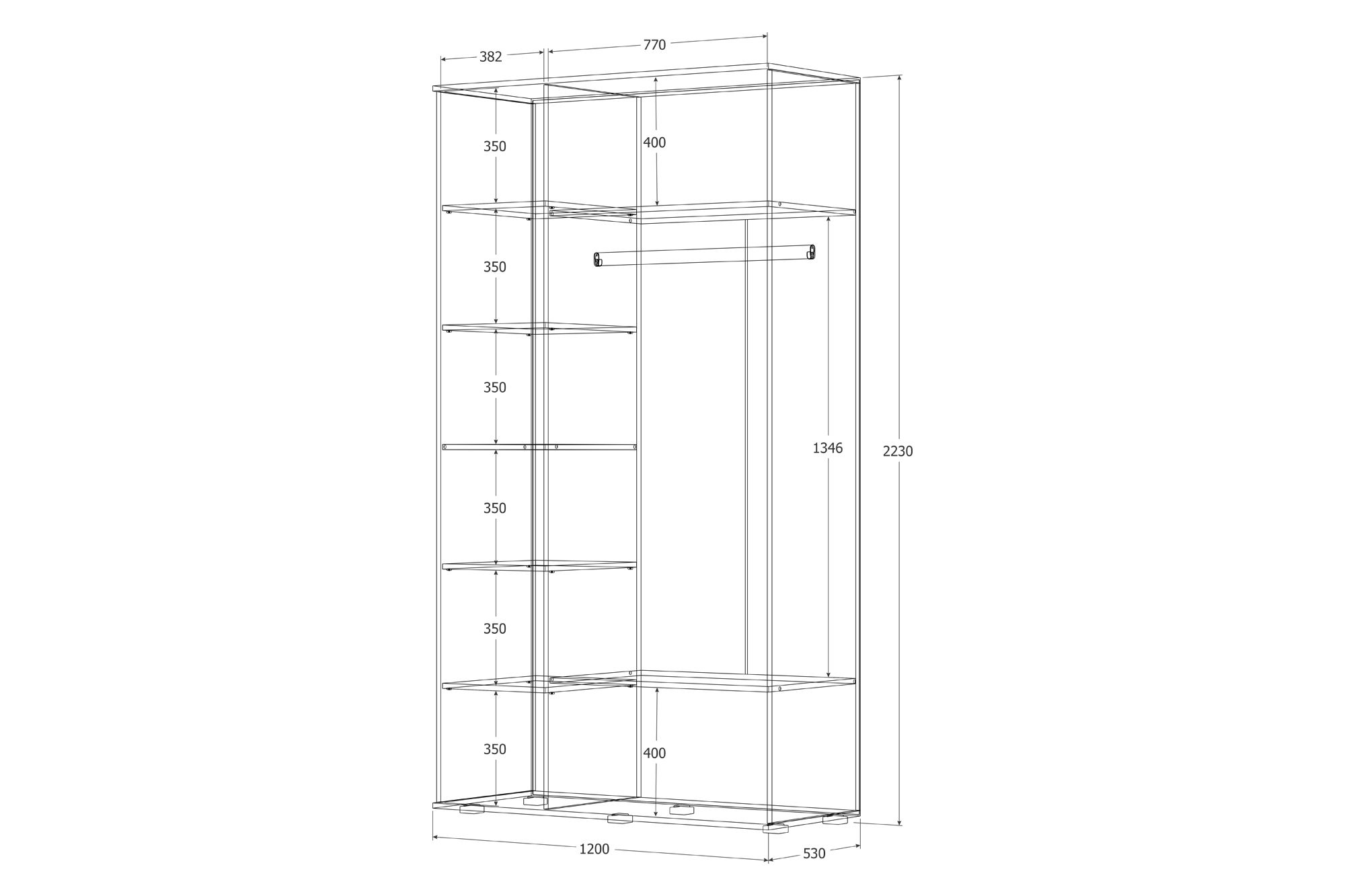 Габариты (ШхВхГ): 1600*2230*530
