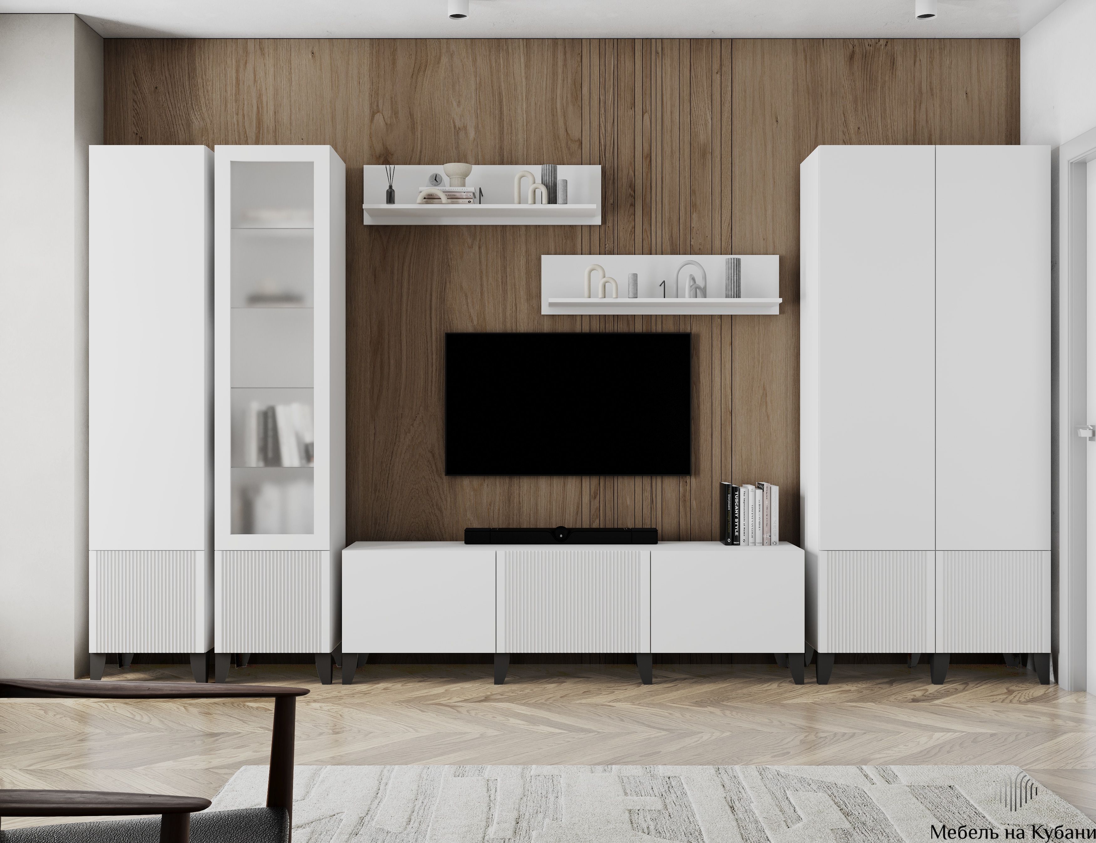 Рея комлект мебели для гостиной Белый с тиснением/Белый Снег