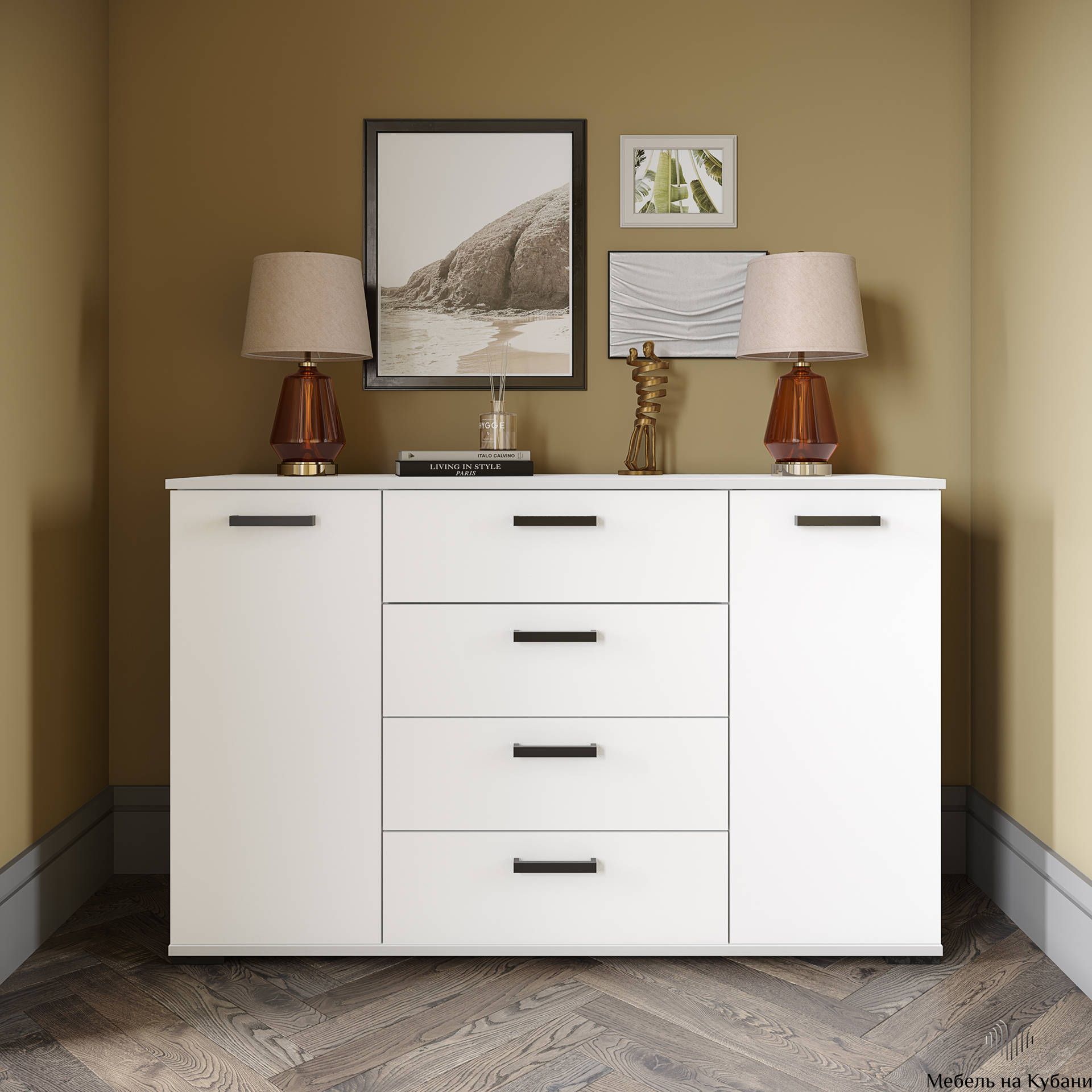Комод КМ-4 Белый с тиснением "Древесные поры"