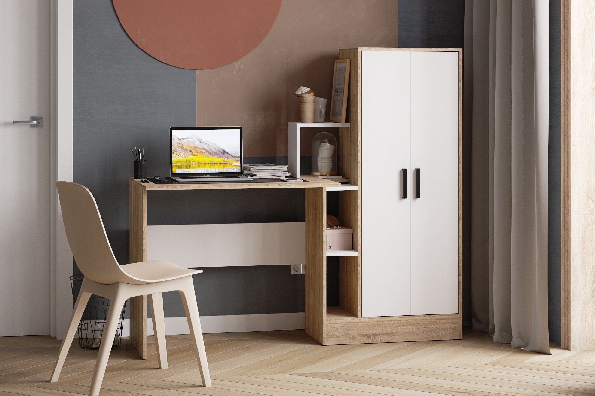 Цвет: Корпус ЛДСП Белый с тиснением «Древесные поры», ЛДСП Дуб Сонома,Фасад ЛДСП Белый с тиснением «Древесные поры»