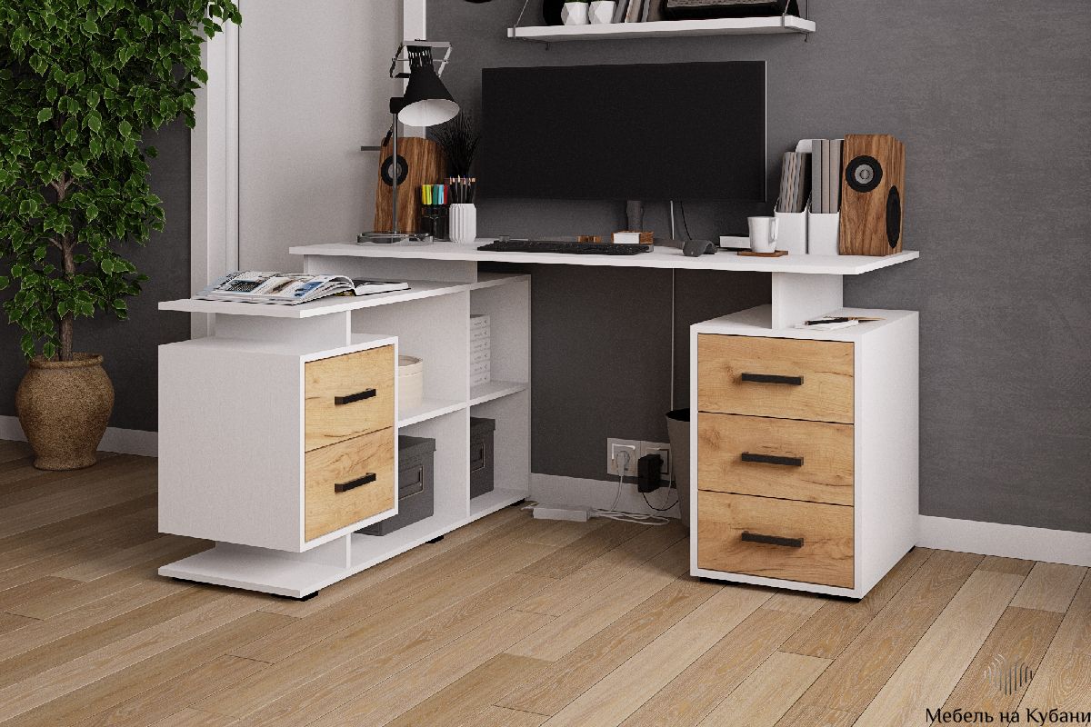 СКМУ-3 компьютерный стол угловой Белый с тиснением/Дуб Крафт Золотой