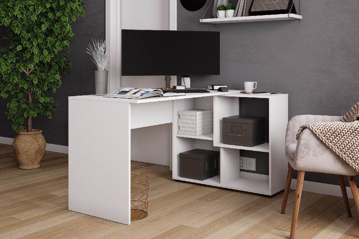 СКМУ-4 компьютерный стол угловой Белый с тиснением «Древесные поры»