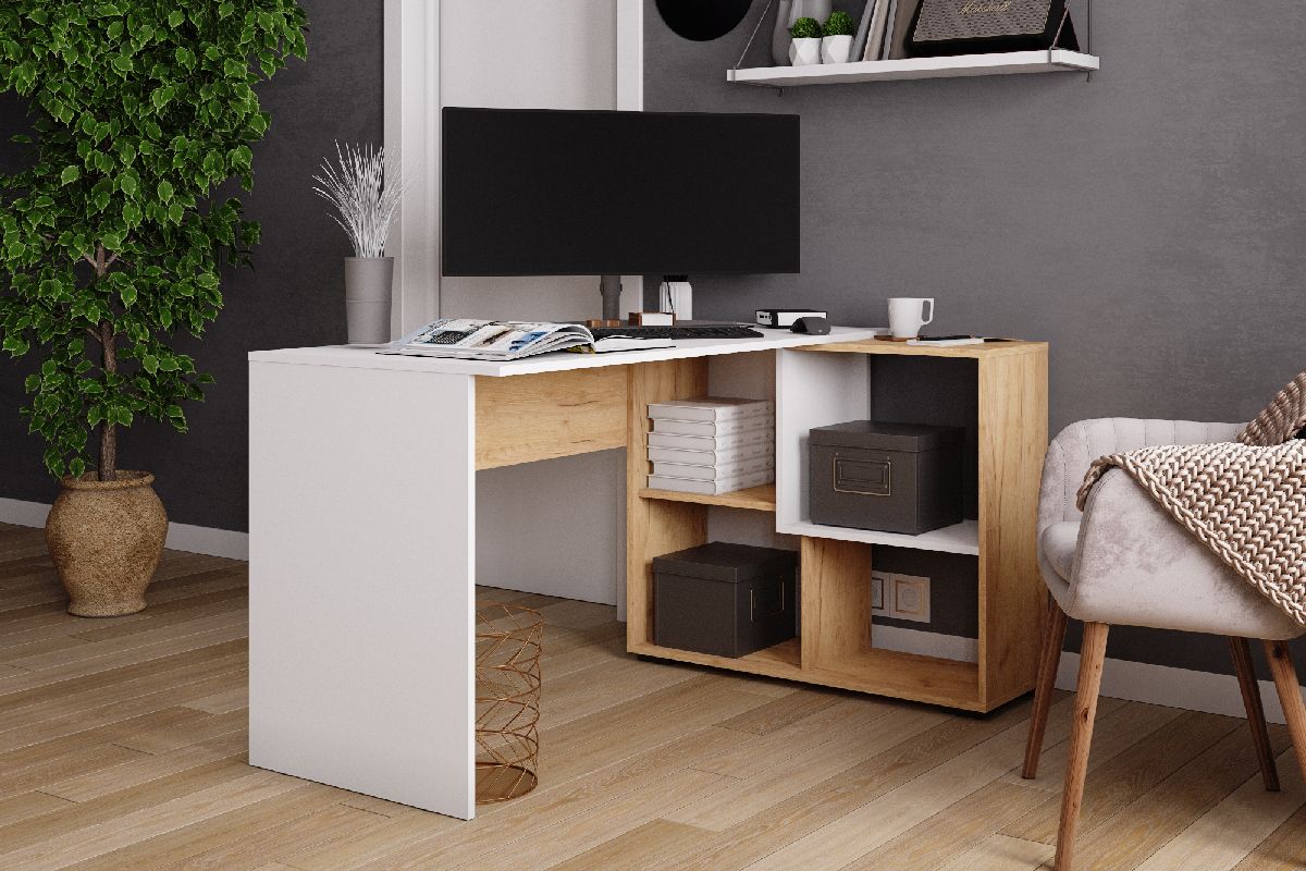 СКМУ-4 компьютерный стол угловой Белый с тиснением/Дуб Крафт Золотой